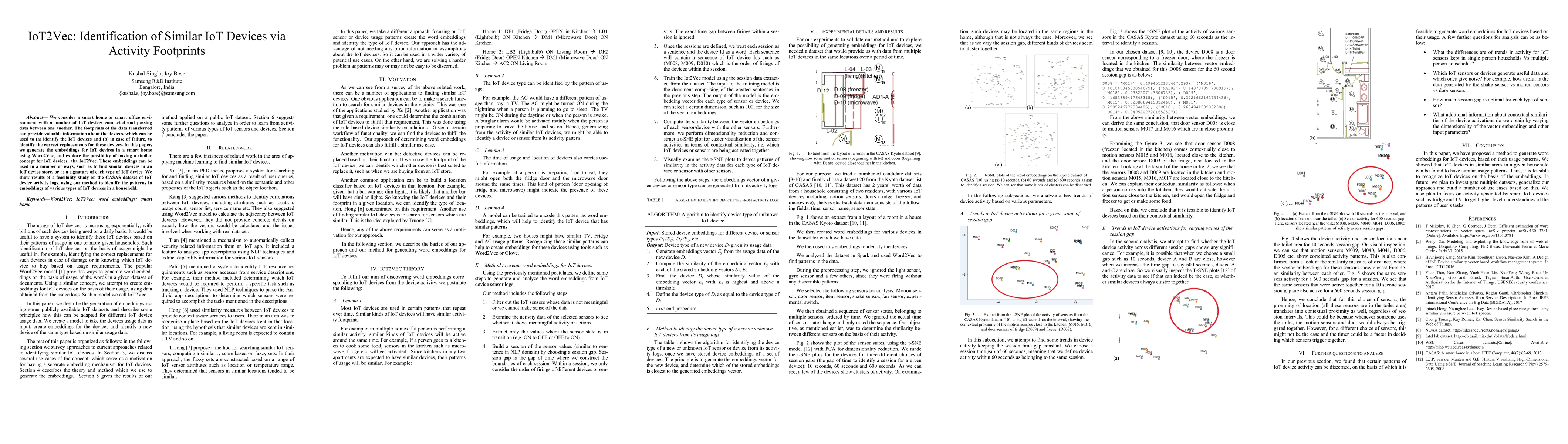 This paper proposes IoT2Vec, a method to identify similar IoT devices in smart environments using activity footprints and Word2Vec embeddings. The study demonstrates the feasibility of this approach on the CASAS dataset, showing potential for device identification and replacement.