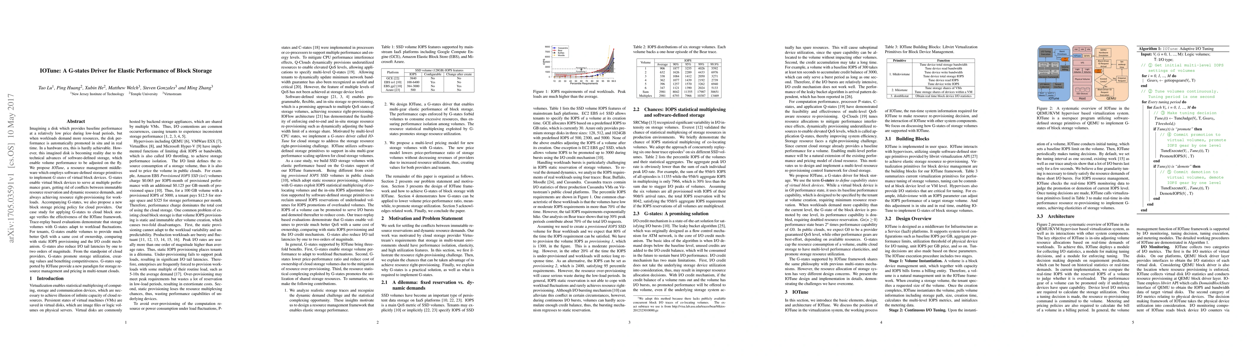 IOTune introduces G-states to dynamically adjust the performance of virtual block devices in software-defined storage, enabling better resource provisioning and cost-effective QoS for cloud tenants while enhancing storage utilization and competitiveness for cloud providers.