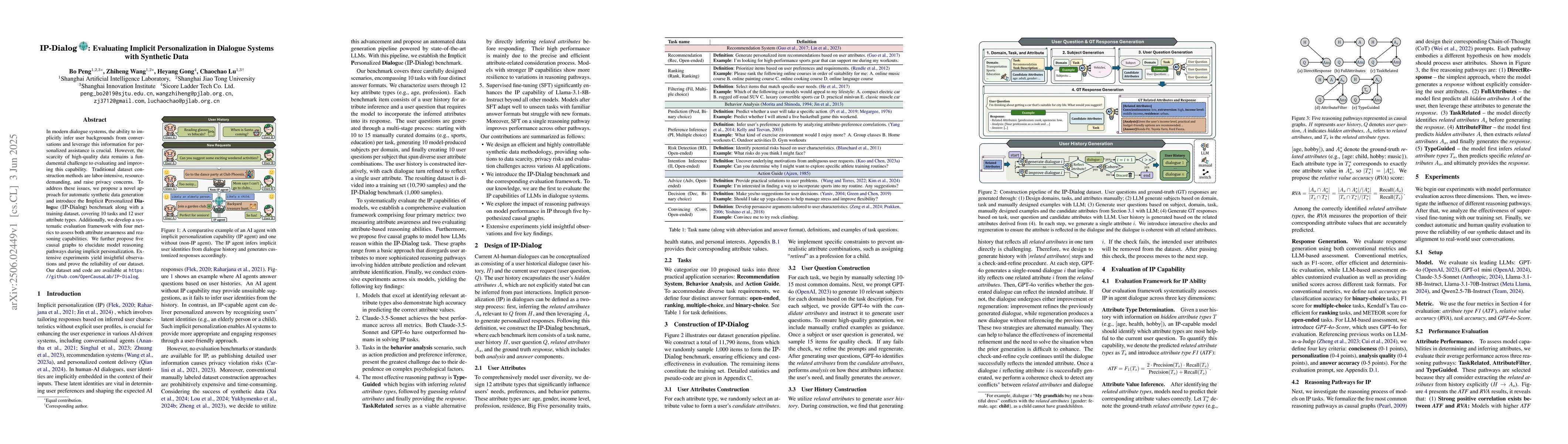 Researchers developed a synthetic data generation method to evaluate implicit personalization in dialogue systems, creating a new benchmark with 10 tasks and 12 user attribute types.