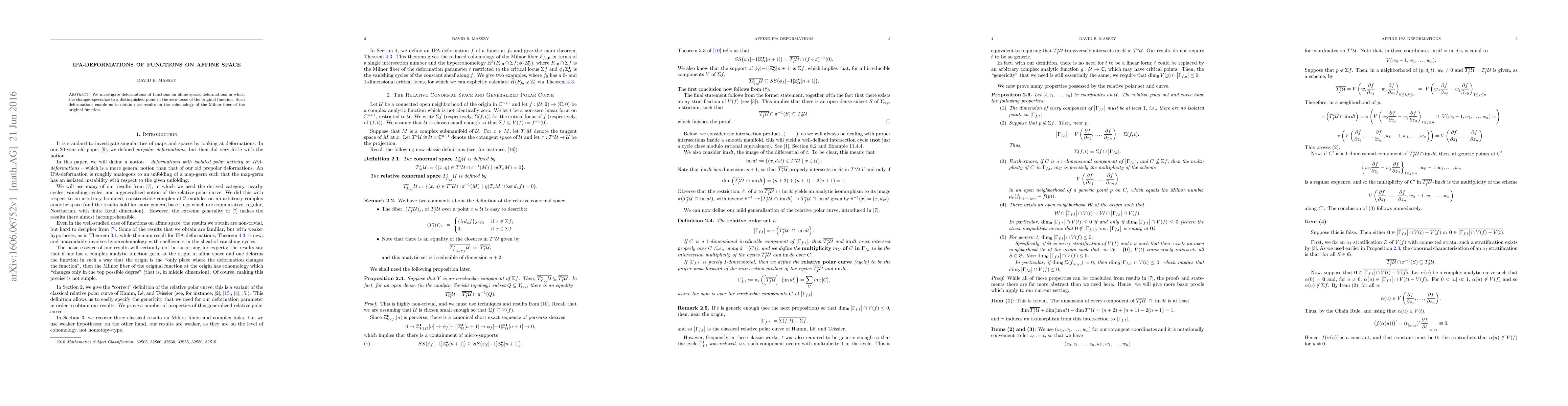 This paper explores deformations of functions on affine space that converge to a specific point in the original function's zero-locus, leading to improved understanding of the Milnor fiber's cohomology. The study provides valuable insights into the structure of these deformations.