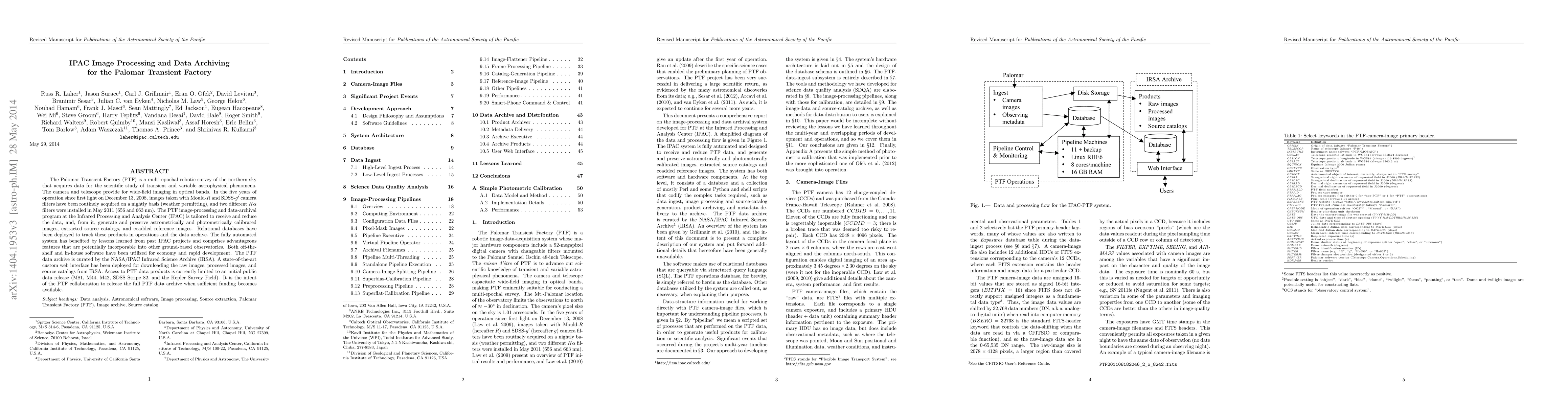The Palomar Transient Factory (PTF) conducts a multi-epochal survey of the northern sky to study transient and variable astrophysical phenomena. The IPAC processes PTF data to generate calibrated images and catalogs, utilizing both off-the-shelf and custom software, and archives these products in the NASA/IPAC Infrared Science Archive.
