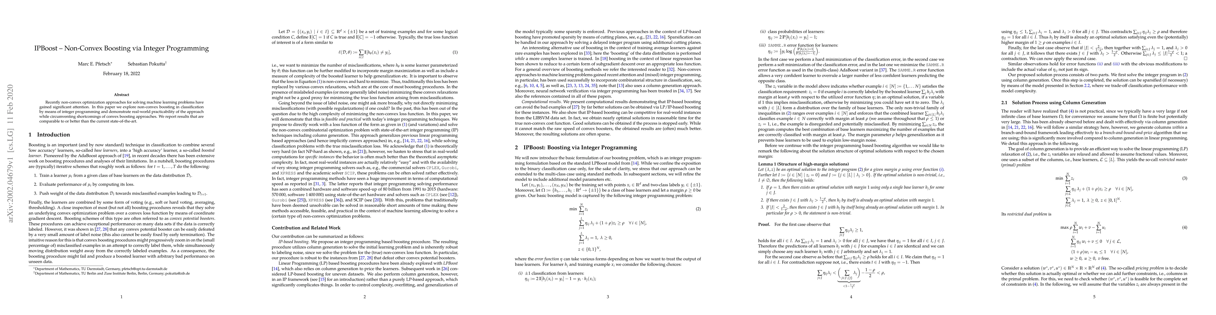 Summary: This paper introduces IPBoost, a non-convex boosting method using integer programming for classification, demonstrating practical effectiveness and performance comparable to or surpassing current state-of-the-art convex boosting techniques.