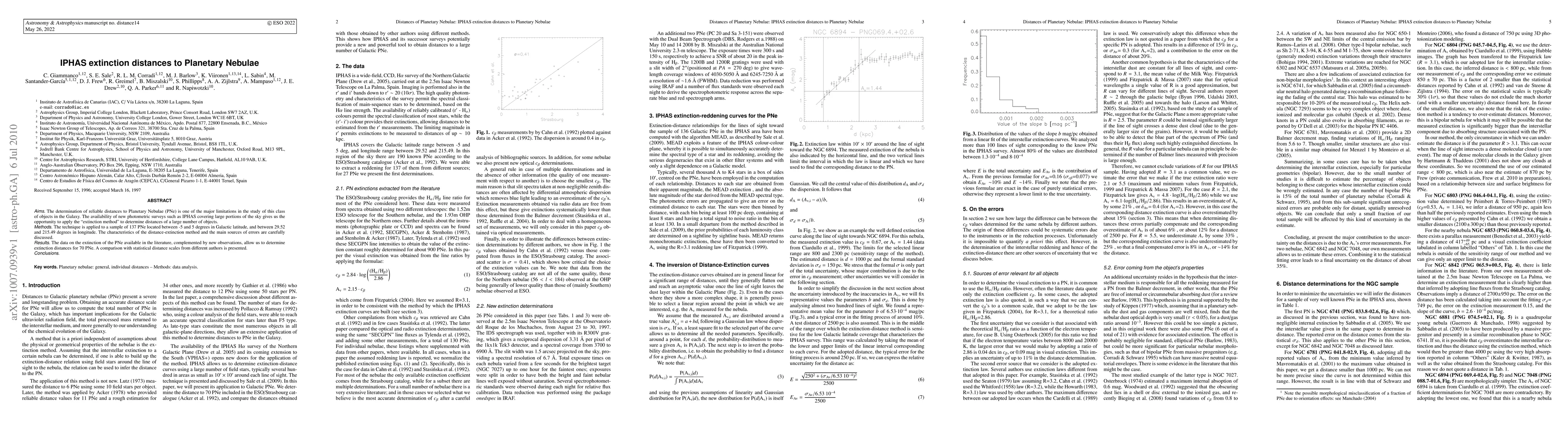 The determination of reliable distances to Planetary Nebulae (PNe) is one of the major limitations in the study of this class of objects in the Galaxy. The availability of new photometric surveys such as IPHAS covering large portions of the sky gives us the opportunity to apply the "extinction method" to determine distances of a large number of objects. The technique is applied to a sample of 137 PNe located between -5 and 5 degrees in Galactic latitude, and between 29.52 and 215.49 degrees in longitude. The characteristics of the distance-extinction method and the main sources of errors are carefully discussed. The data on the extinction of the PNe available in the literature, complemented by new observations, allow us to determine extinction distances for 70 PNe. A comparison with statistical distance scales from different authors is presented.