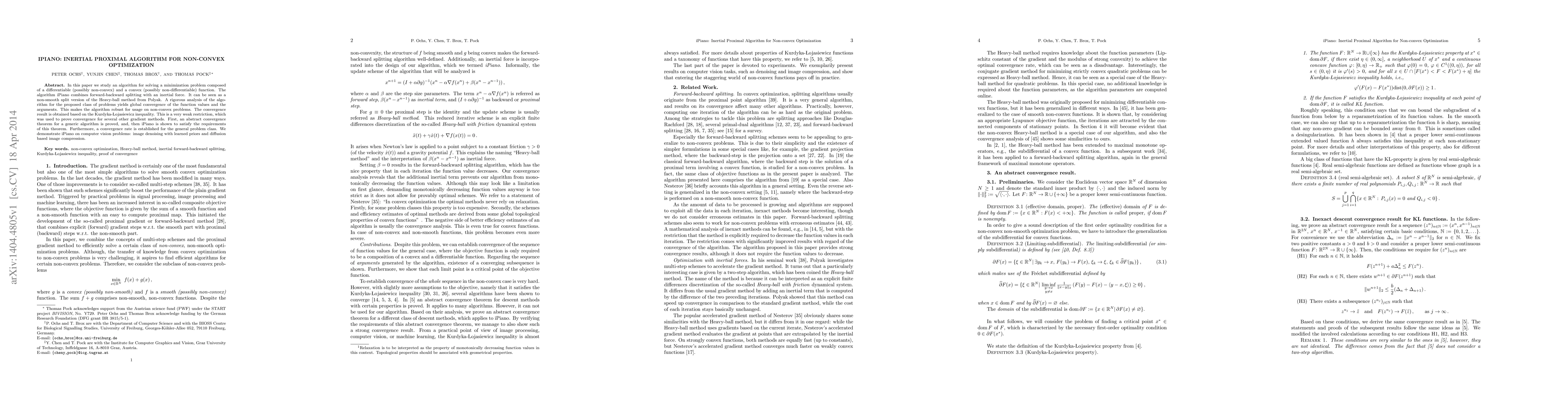 The iPiano algorithm combines forward-backward splitting with an inertial force to solve non-convex optimization problems, achieving global convergence for a wide range of functions.