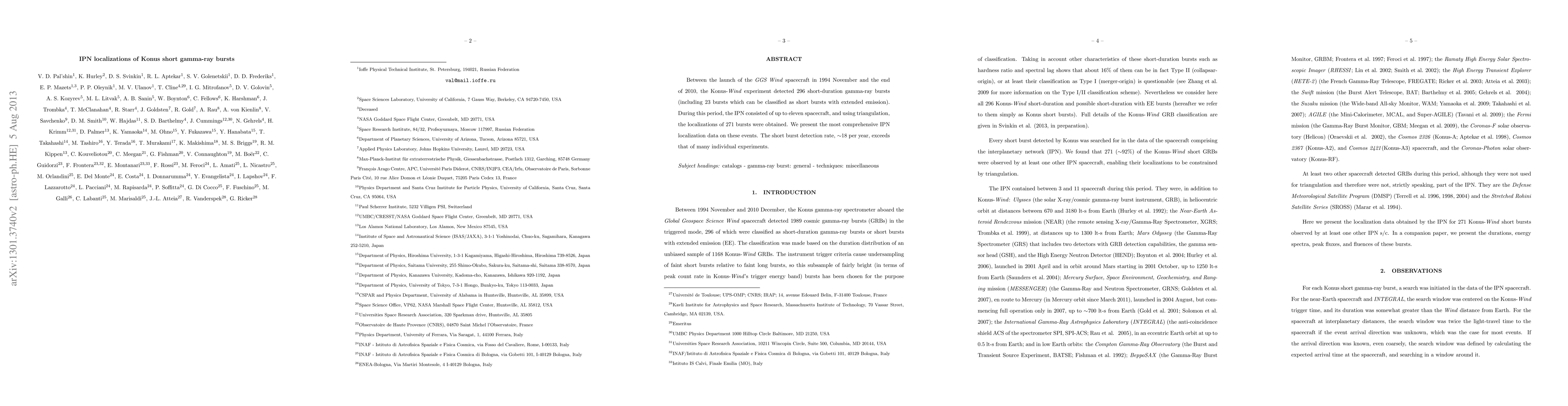 Researchers analyzed 296 short gamma-ray bursts detected by the Konus-Wind experiment between 1994 and 2010, localizing 271 events using triangulation, revealing a burst detection rate of around 18 per year.
