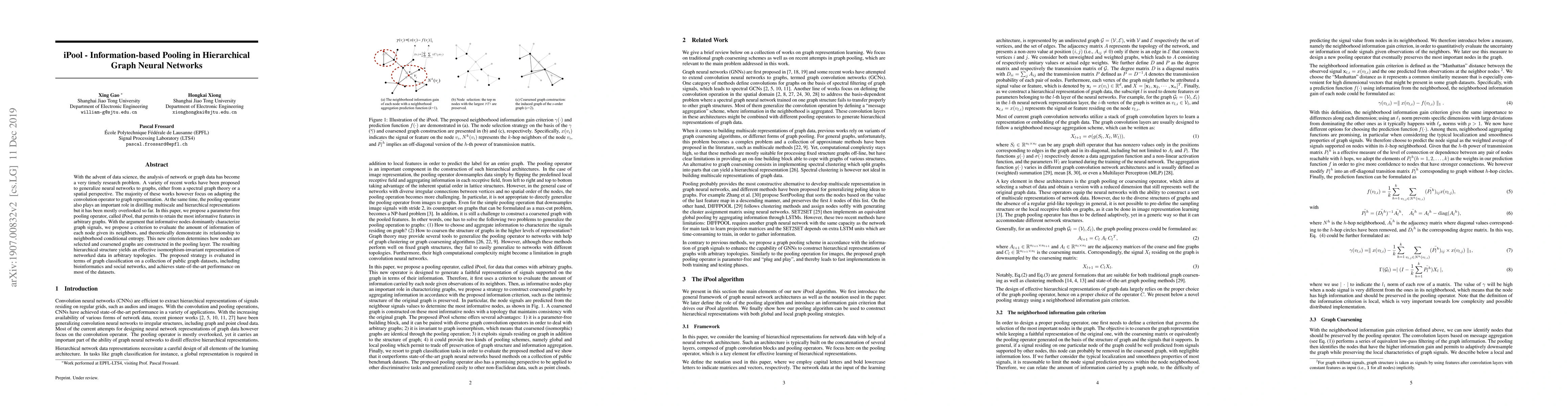 The paper introduces iPool, a parameter-free pooling operator for hierarchical graph neural networks that selects the most informative nodes based on neighborhood conditional entropy, achieving state-of-the-art performance in graph classification on various datasets.