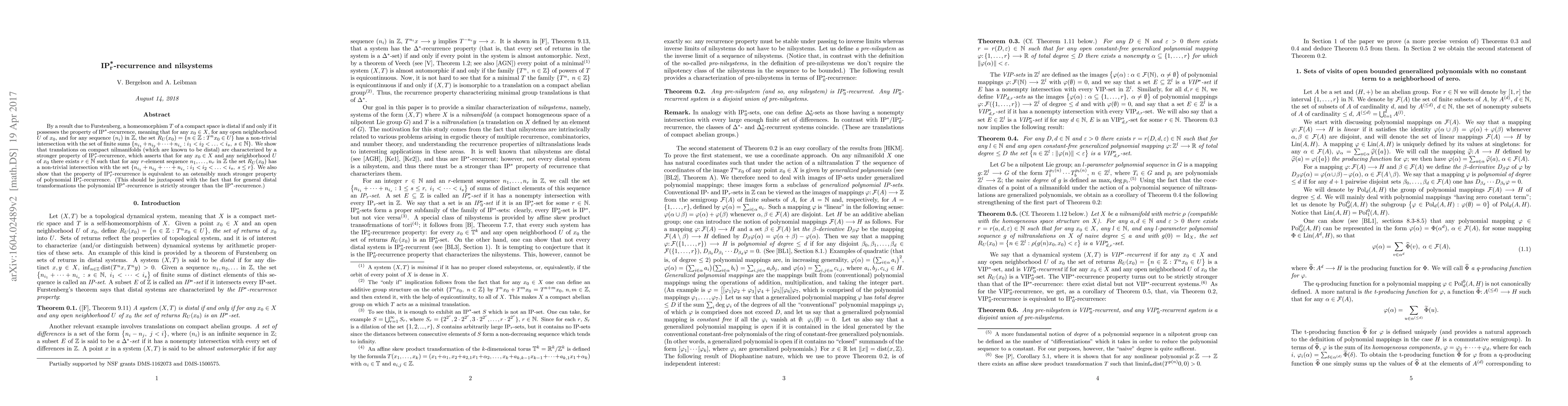 This paper demonstrates that nilsystems exhibit the IPr*-recurrence property and identifies this property as a defining characteristic of nilsystems.