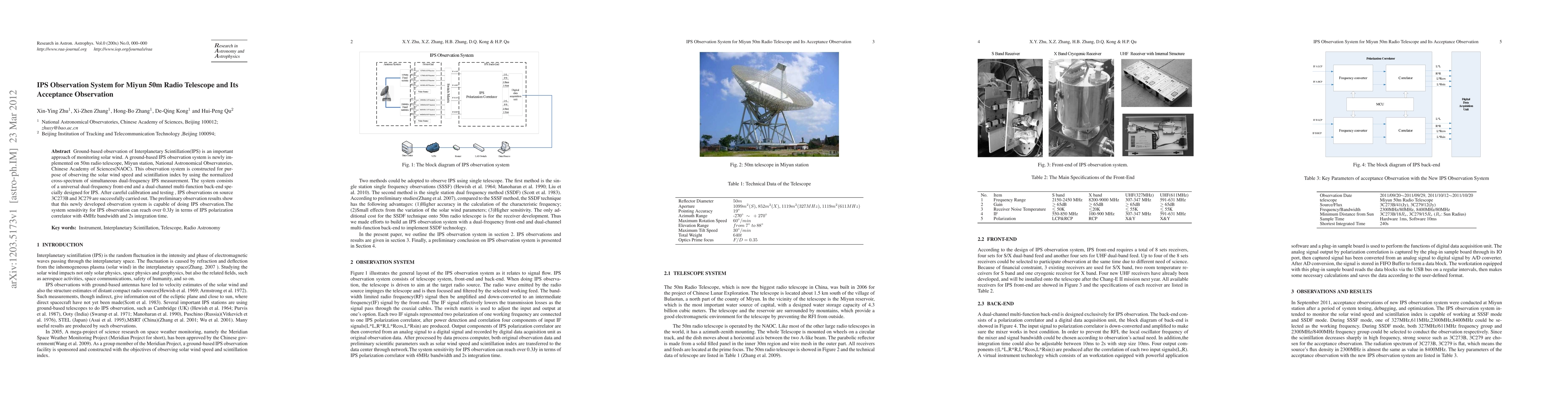 A new ground-based IPS observation system was successfully implemented on a 50m radio telescope, allowing for the monitoring of solar wind speed and scintillation index with high sensitivity.
