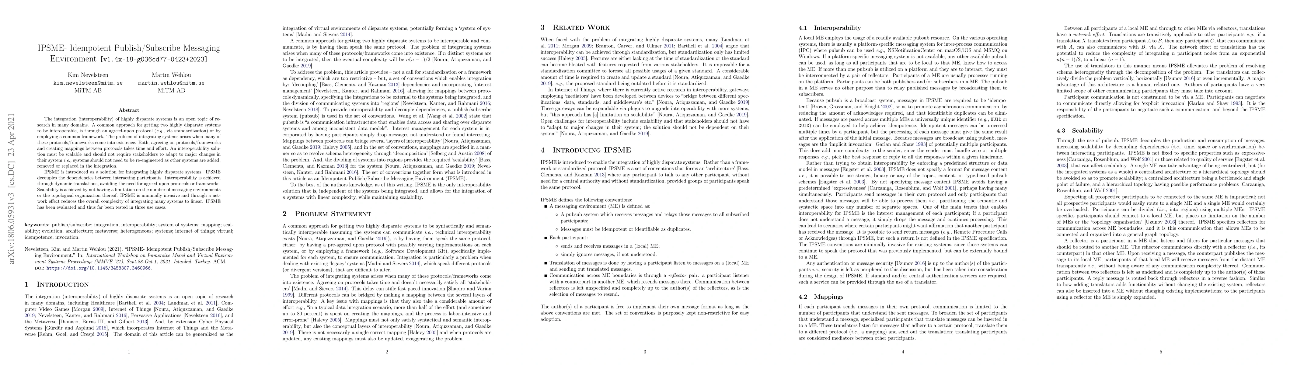The integration (interoperability) of highly disparate systems is an open topic of research in many domains. A common approach for getting two highly disparate systems to be interoperable, is through an agreed-upon protocol (e.g., via standardization) or by employing a common framework. The problem of integrating systems arises when many of these protocols/frameworks come into existence. Both, agreeing on protocols/frameworks and creating mappings between protocols takes time and effort. An interoperability solution must be scalable and should not require stakeholders to adapt to major changes in their system i.e., systems should not need to be re-engineered as other systems are added, removed or replaced in the integration. IPSME is introduced as a solution for integrating highly disparate systems. IPSME decouples the dependencies between interacting participants. Interoperability is achieved through dynamic translations, avoiding the need for agreed-upon protocols or frameworks. Scalability is achieved by not having a limitation on the number of messaging environments or the topological organization thereof. IPSME is minimally invasive and through a network effect reduces the overall complexity of integrating many systems to linear. IPSME has been evaluated and thus far been tested in three use cases.