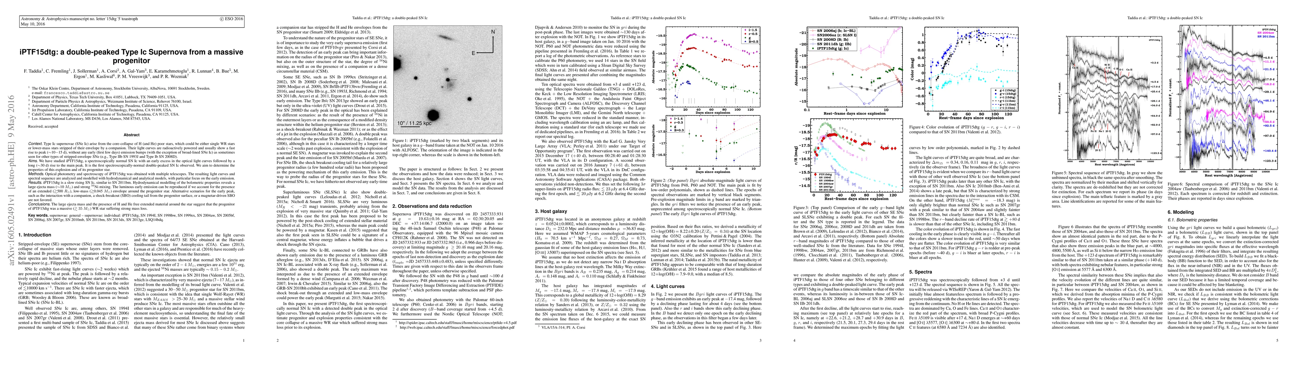 A new Type Ic supernova, iPTF15dtg, exhibits a double-peaked light curve with an early excess, suggesting a massive progenitor star with strong mass loss and a large ejecta mass of approximately 10 solar masses.