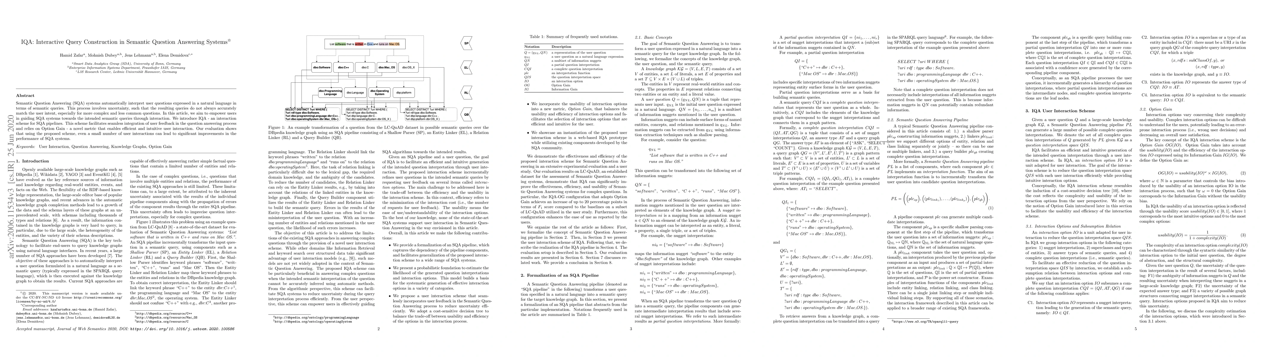 This paper introduces IQA, an interactive query construction scheme to enhance Semantic Question Answering (SQA) systems by incorporating user feedback to better match user intent. The system uses Option Gain, a novel metric, to facilitate efficient user interaction, showing significant performance improvements with minimal user input.