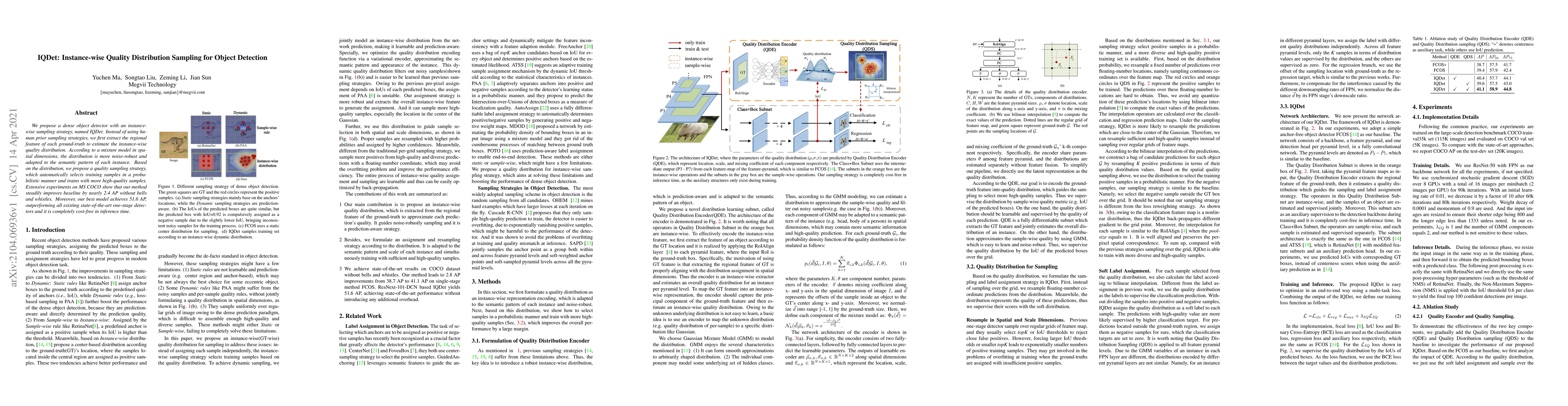 We propose a dense object detector with an instance-wise sampling strategy, named IQDet. Instead of using human prior sampling strategies, we first extract the regional feature of each ground-truth to estimate the instance-wise quality distribution. According to a mixture model in spatial dimensions, the distribution is more noise-robust and adapted to the semantic pattern of each instance. Based on the distribution, we propose a quality sampling strategy, which automatically selects training samples in a probabilistic manner and trains with more high-quality samples. Extensive experiments on MS COCO show that our method steadily improves baseline by nearly 2.4 AP without bells and whistles. Moreover, our best model achieves 51.6 AP, outperforming all existing state-of-the-art one-stage detectors and it is completely cost-free in inference time.