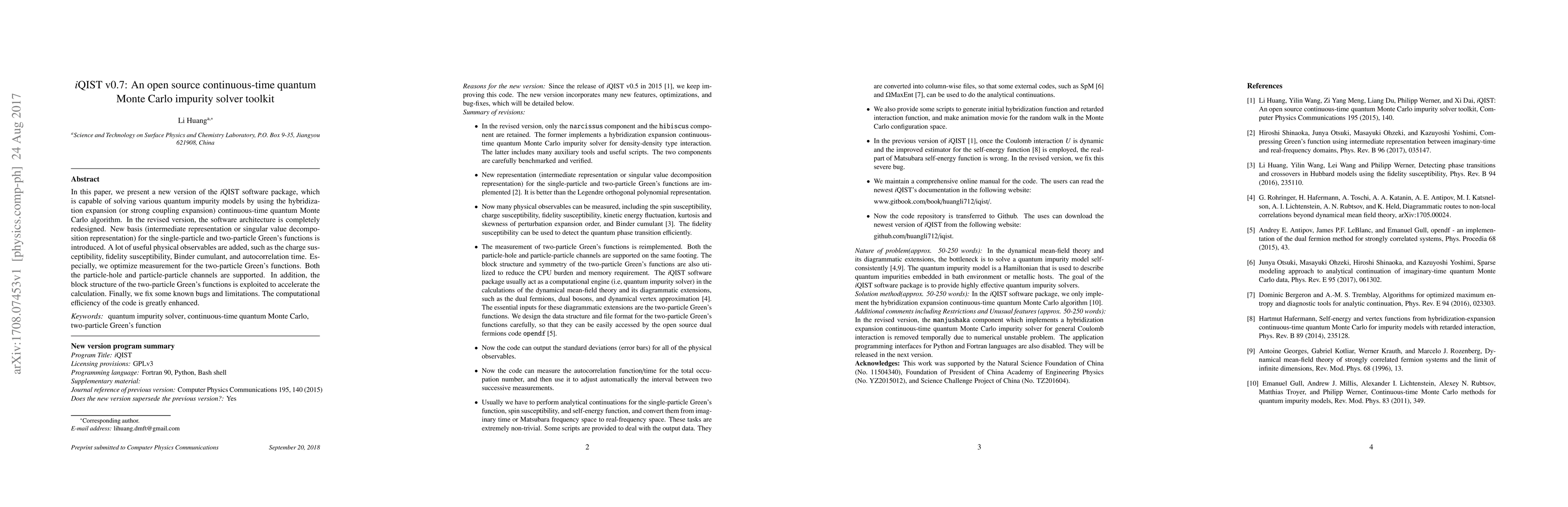 The $i$QIST v0.7 toolkit offers a redesigned open-source continuous-time quantum Monte Carlo solver for quantum impurity models, introducing new representations for Green's functions and enhancing computational efficiency with added physical observables and optimizations.