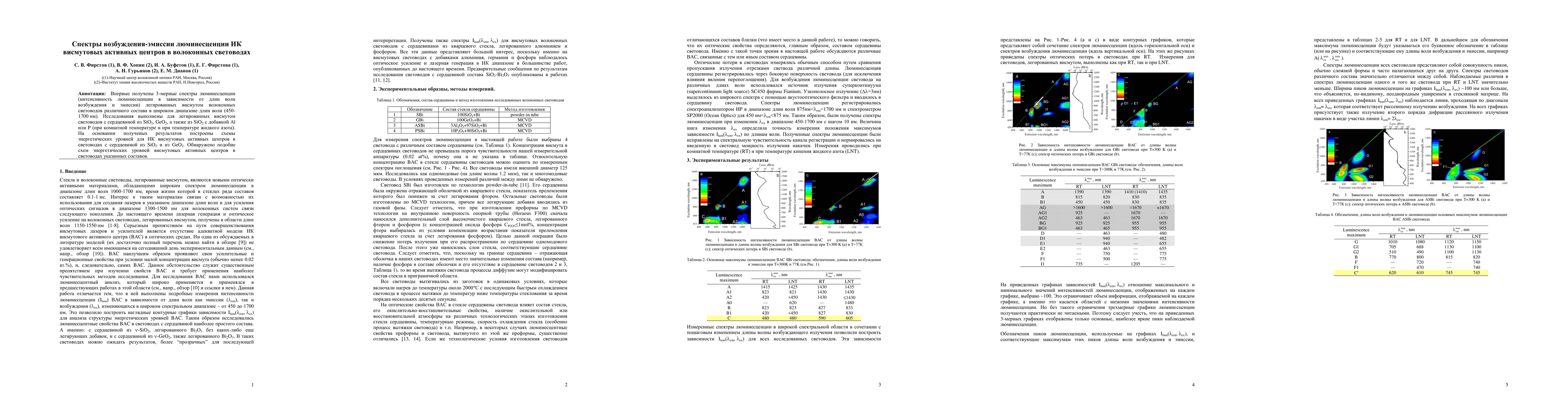 This study investigates the luminescence spectra of Bi-doped optical fibers of various compositions, revealing the energy level schemes of IR bismuth active centers in pure silica and germania fibers. The similarity of these energy levels in different fiber types was identified through combined excitation-emission spectroscopy.