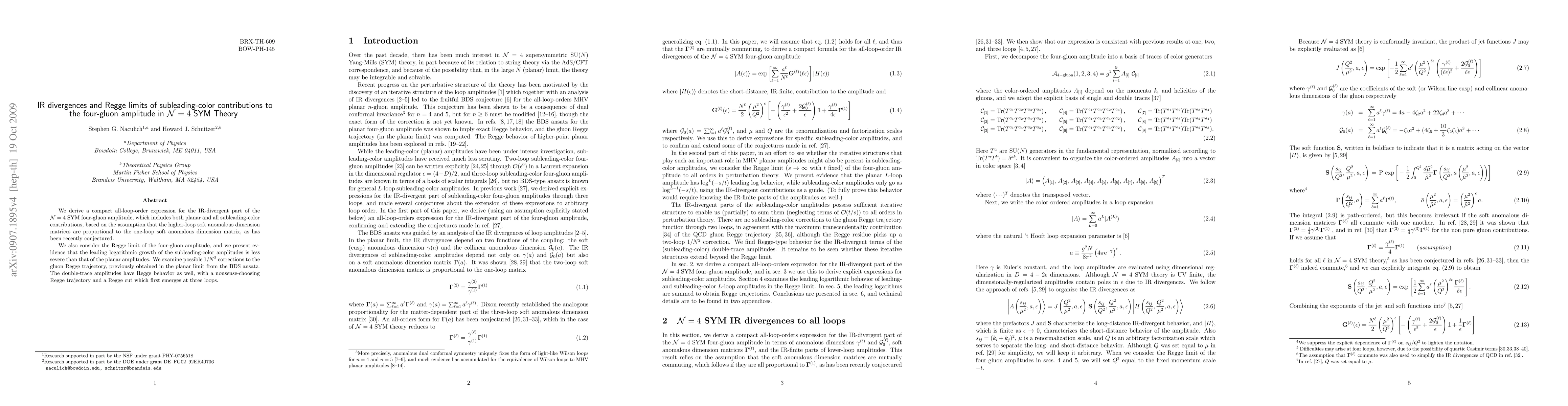 This paper derives an all-loop expression for the IR-divergent part of the N=4 SYM four-gluon amplitude, showing that subleading-color contributions grow less severely than planar ones in the Regge limit. It also investigates double-trace amplitudes' Regge behavior, revealing a new Regge cut at three loops.