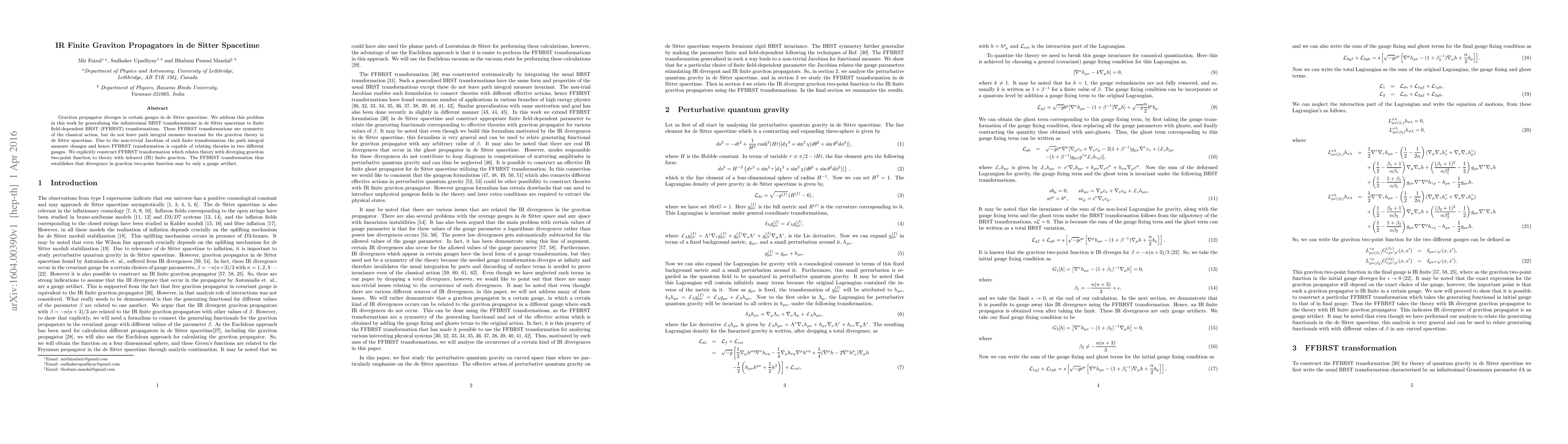 This paper addresses the divergence of the graviton propagator in de Sitter spacetime by using finite field-dependent BRST (FFBRST) transformations. The FFBRST transformations relate theories with diverging and infrared finite graviton propagators, suggesting that the divergence may be a gauge artifact.