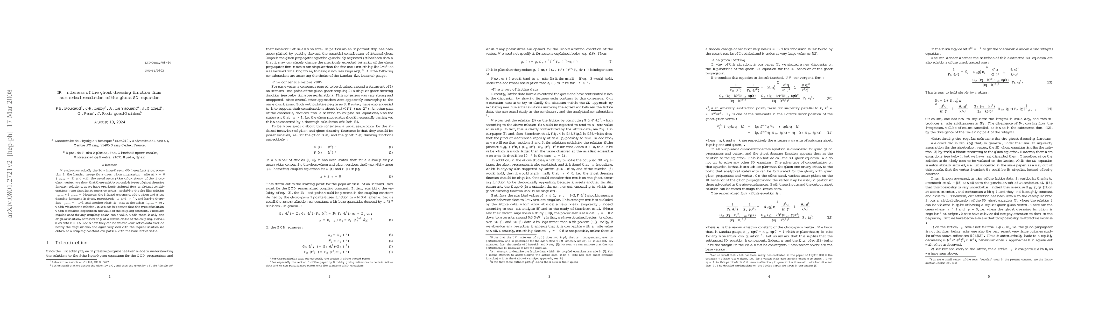 This study numerically solves the Schwinger-Dyson ghost equation in Landau gauge, finding two types of ghost dressing function solutions: one singular with alpha_ghost=-1/2 and another finite at zero momentum, which depends on the coupling constant value.