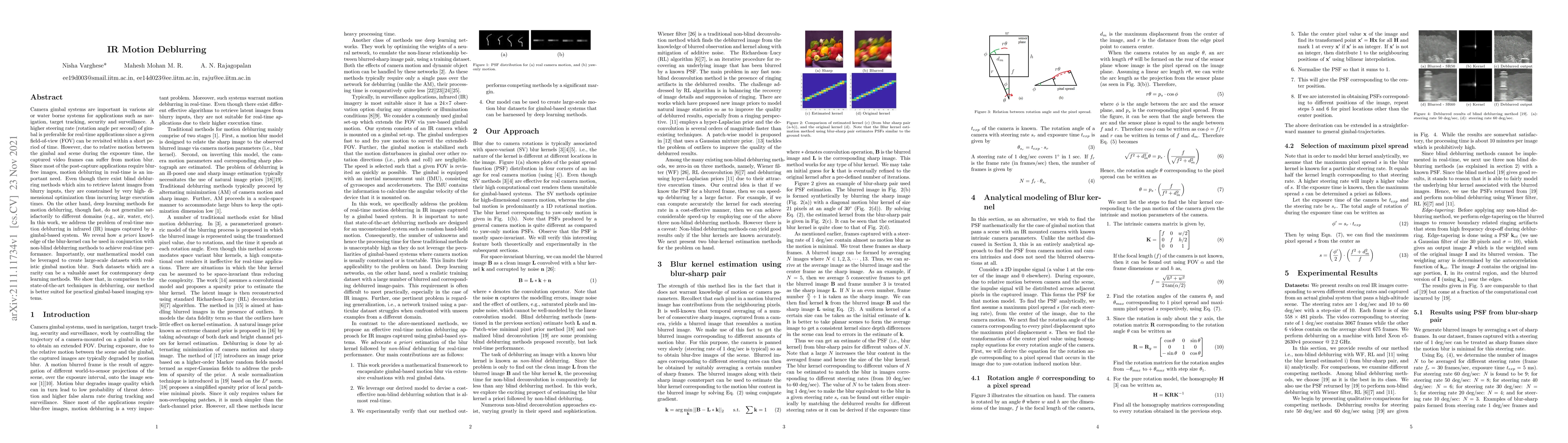 This paper proposes a real-time motion deblurring method for infrared images captured by gimbal systems, leveraging a priori knowledge of the blur-kernel to enhance performance. The method also generates large-scale datasets for training deep learning models, outperforming existing state-of-the-art techniques in practical gimbal-based imaging scenarios.