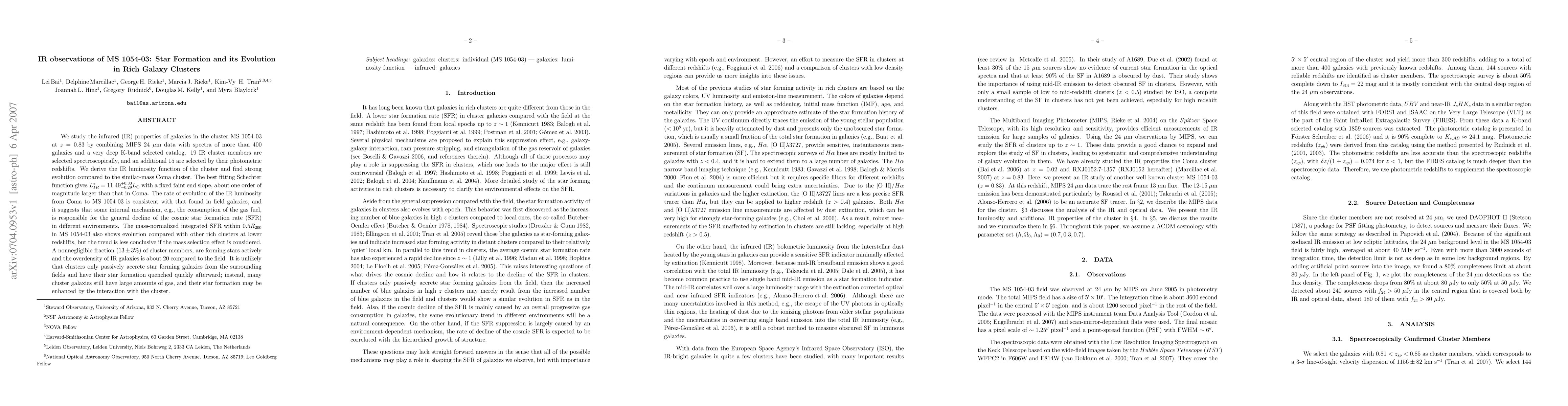 We study the infrared (IR) properties of galaxies in the cluster MS 1054-03 at z=0.83 by combining MIPS 24 micron data with spectra of more than 400 galaxies and a very deep K-band selected catalog. 19 IR cluster members are selected spectroscopically, and an additional 15 are selected by their photometric redshifts. We derive the IR luminosity function of the cluster and find strong evolution compared to the similar-mass Coma cluster. The best fitting Schechter function gives L*_{IR}=11.49 +0.30/-0.29 L_sun with a fixed faint end slope, about one order of magnitude larger than that in Coma. The rate of evolution of the IR luminosity from Coma to MS 1054-03 is consistent with that found in field galaxies, and it suggests that some internal mechanism, e.g., the consumption of the gas fuel, is responsible for the general decline of the cosmic star formation rate (SFR) in different environments. The mass-normalized integrated SFR within 0.5R_200 in MS 1054-03 also shows evolution compared with other rich clusters at lower redshifts, but the trend is less conclusive if the mass selection effect is considered. A nonnegligible fraction (13%) of cluster members, are forming stars actively and the overdensity of IR galaxies is about 20 compared to the field. It is unlikely that clusters only passively accrete star forming galaxies from the surrounding fields and have their star formation quenched quickly afterward; instead, many cluster galaxies still have large amounts of gas, and their star formation may be enhanced by the interaction with the cluster.