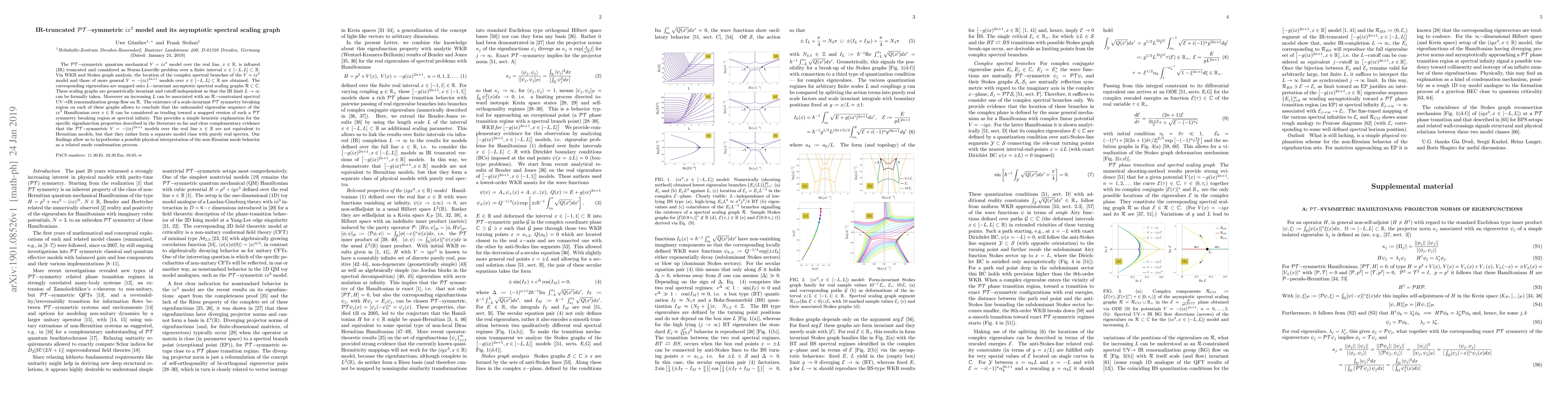 The $\mathcal{PT}-$symmetric quantum mechanical $V=ix^3$ model over the real line, $x\in\mathbb{R}$, is infrared (IR) truncated and considered as Sturm-Liouville problem over a finite interval $x\in\left[-L,L\right]\subset\mathbb{R}$. Via WKB and Stokes graph analysis, the location of the complex spectral branches of the $V=ix^3$ model and those of more general $V=-(ix)^{2n+1}$ models over $x\in\left[-L,L\right]\subset\mathbb{R}$ are obtained. The corresponding eigenvalues are mapped onto $L-$invariant asymptotic spectral scaling graphs $\mathcal{R}\subset \mathbb{C}$. These scaling graphs are geometrically invariant and cutoff-independent so that the IR limit $L\to \infty $ can be formally taken. Moreover, an increasing $L$ can be associated with an $\mathcal{R}-$constrained spectral UV$\to$IR renormalization group flow on $\mathcal{R}$. The existence of a scale-invariant $\mathcal{PT}$ symmetry breaking region on each of these graphs allows to conclude that the unbounded eigenvalue sequence of the $ix^3$ Hamiltonian over $x\in\mathbb{R}$ can be considered as tending toward a mapped version of such a $\mathcal{PT}$ symmetry breaking region at spectral infinity. This provides a simple heuristic explanation for the specific eigenfunction properties described in the literature so far and clear complementary evidence that the $\mathcal{PT}-$symmetric $V=-(ix)^{2n+1}$ models over the real line $x\in\mathbb{R}$ are not equivalent to Hermitian models, but that they rather form a separate model class with purely real spectra. Our findings allow us to hypothesize a possible physical interpretation of the non-Rieszian mode behavior as a related mode condensation process.