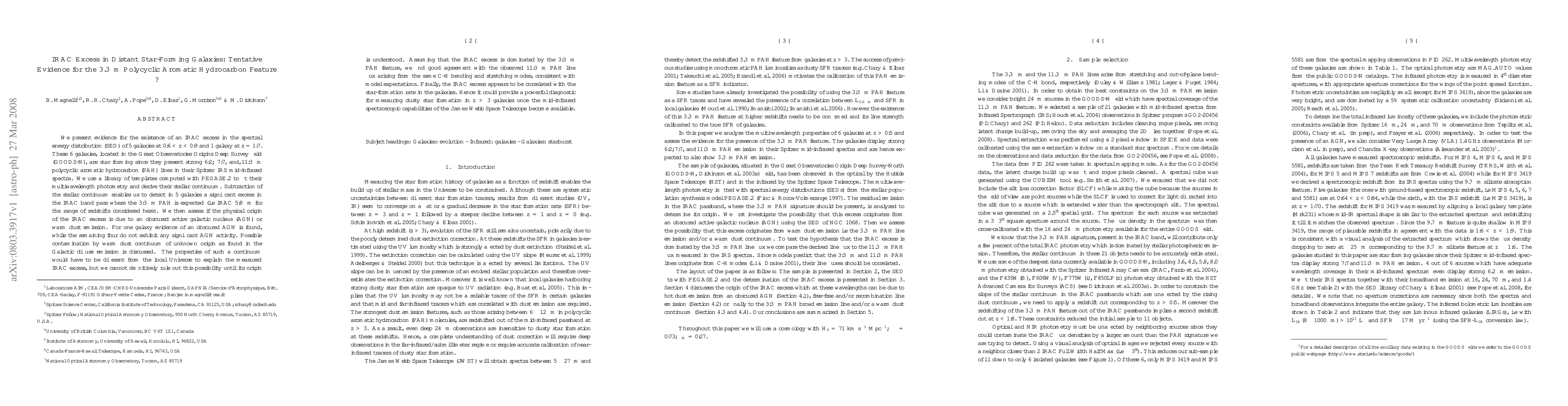 Researchers found evidence of an IRAC excess in 6 distant galaxies with strong PAH lines, suggesting that the excess is due to polycyclic aromatic hydrocarbon (PAH) features, potentially used as a diagnostic for dusty star formation.