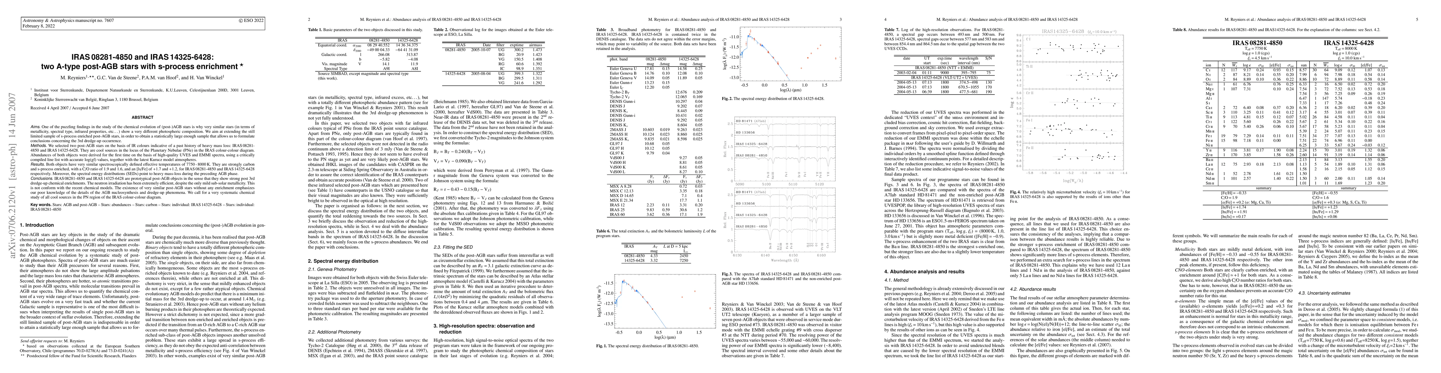 This study investigates the chemical enrichment of two post-AGB stars, IRAS08281-4850 and IRAS14325-6428, revealing significant s-process enhancements. Despite their similar properties, these stars show starkly different photospheric compositions, highlighting the need for a systematic chemical analysis of similar objects to better understand AGB nucleosynthesis and dredge-up processes.