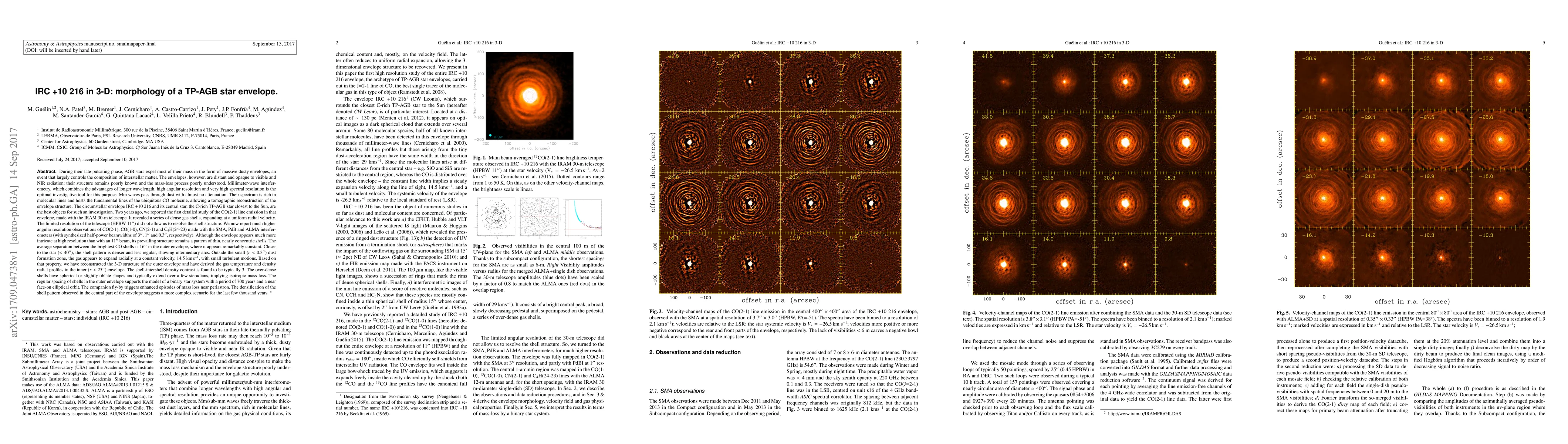 During their late pulsating phase, AGB stars expel most of their mass in the form of massive dusty envelopes, an event that largely controls the composition of interstellar matter. The envelopes, however, are distant and opaque to visible and NIR radiation: Their structure remains poorly known and the mass-loss process poorly understood. Millimeter-wave interferometry is the optimal investigative tool for this purpose. The circumstellar envelope IRC +10 216 and its central star, the C-rich TP-AGB star closest to the Sun, are the best objects for such an investigation. Two years ago, we reported on IRAM 30-m telescope CO(2-1) line emission observations in that envelope (HPBW 11"). We now report much higher angular resolution observations of CO(2-1), CO(1-0), CN(2-1) and C$_4$H(24-23) made with the SMA, PdB and ALMA interferometers (with synthesized half-power beamwidths of 3", 1" and 0.3", respectively). Although the envelope appears more intricate at high resolution, its prevailing structure remains a pattern of thin, nearly concentric shells. Outside the small (r<0.3") dust formation zone, the gas appears to expand radially at a constant velocity, 14.5 km/s, with small turbulent motions. Based on that property, we have reconstructed the 3-D structure of the outer envelope and have derived the gas temperature and density radial profiles in the inner (r<25") envelope. The over-dense shells have spherical or slightly oblate shapes and typically extend over a few steradians, implying isotropic mass loss. The regular spacing of shells in the outer envelope supports the model of a binary star system with a period of 700 years and a near face-on elliptical orbit. The companion fly-by triggers enhanced episodes of mass loss near periastron. The densification of the shell pattern observed in the central part of the envelope suggests a more complex scenario for the last few thousand years.