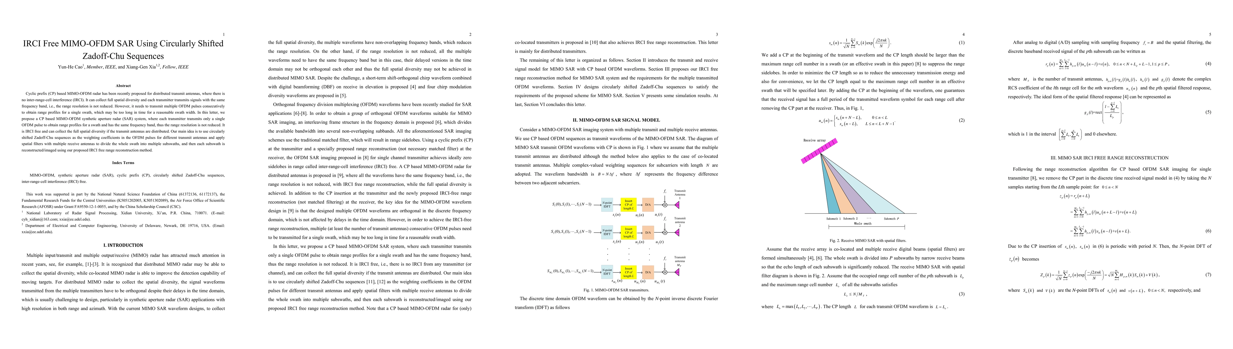Researchers propose a new SAR system that uses circularly shifted Zadoff-Chu sequences to improve range resolution and reduce inter-range-cell interference, allowing for better performance in distributed transmit antennas.