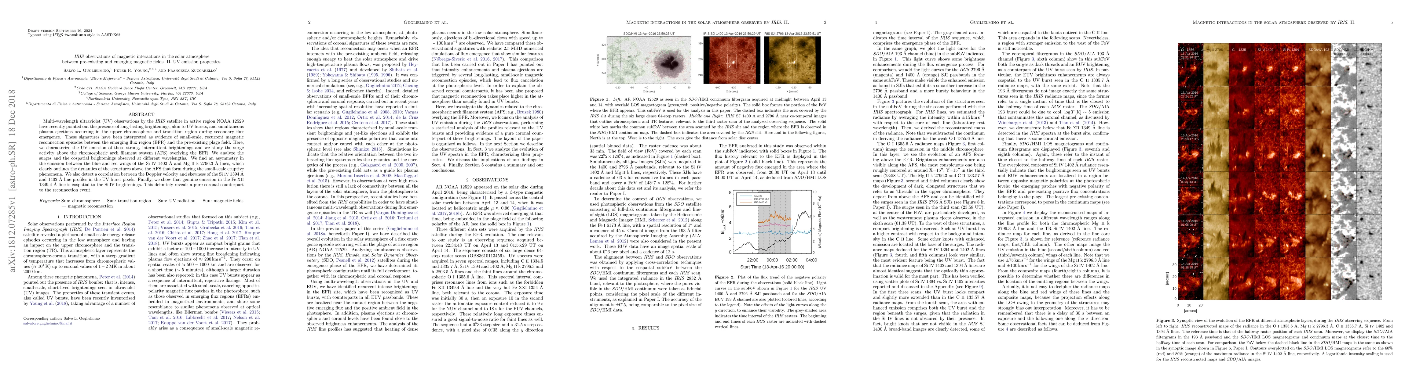 This study uses IRIS satellite observations to analyze UV emissions during magnetic interactions in the solar atmosphere, revealing recurrent magnetic reconnection episodes between emerging and pre-existing magnetic fields. The research identifies asymmetries in Si IV and Mg II line profiles and finds correlations between Doppler velocity and skewness, indicating dynamic structures and coronal counterparts to these reconnection events.