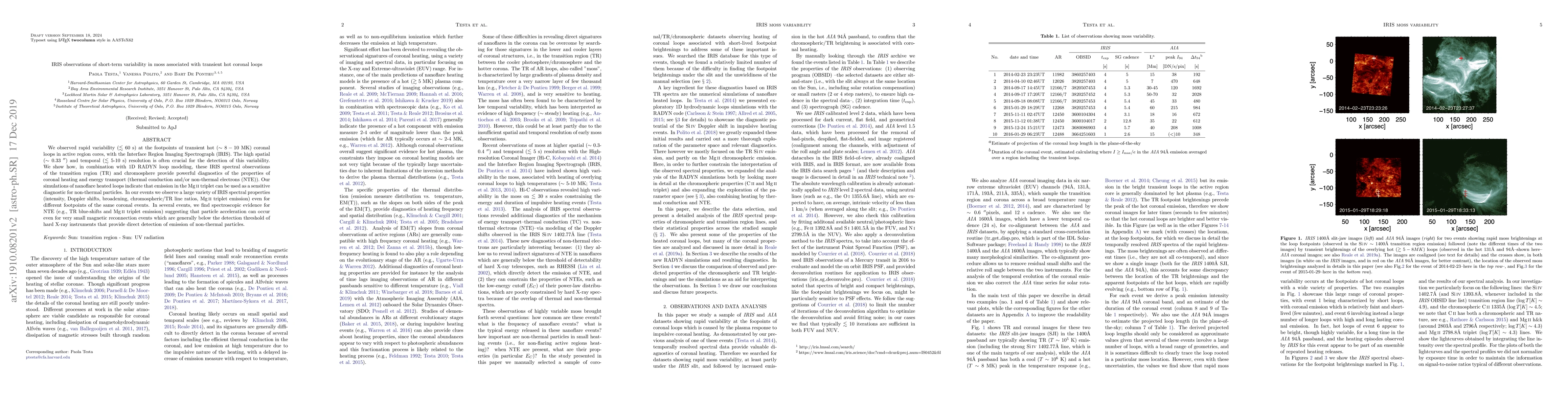 This study uses IRIS observations to detect rapid variability at the footpoints of transient hot coronal loops, revealing insights into coronal heating and energy transport mechanisms. The findings suggest that non-thermal electron acceleration can occur in small reconnection events, as evidenced by spectral properties like TR blue-shifts and Mg II triplet emission.