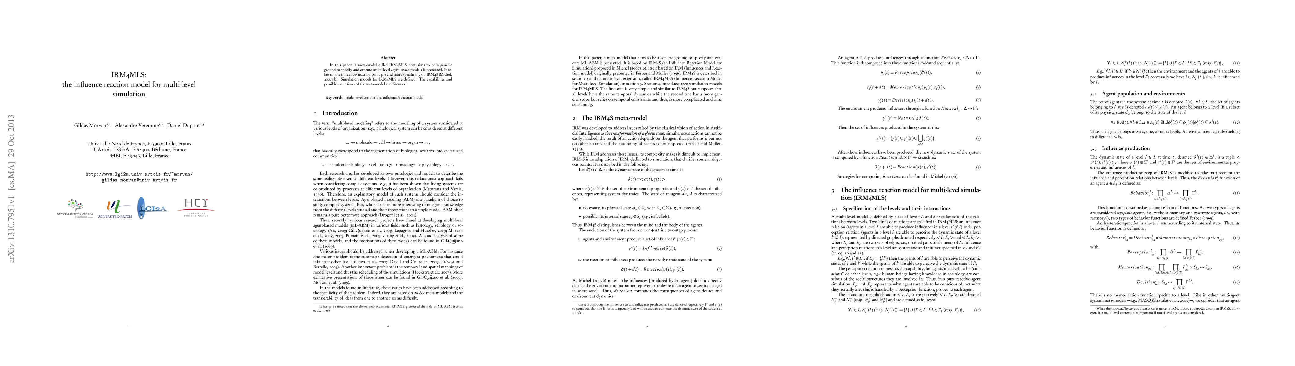 In this paper, a meta-model called IRM4MLS, that aims to be a generic ground to specify and execute multi-level agent-based models is presented. It relies on the influence/reaction principle and more specifically on IRM4S. Simulation models for IRM4MLS are defined. The capabilities and possible extensions of the meta-model are discussed.