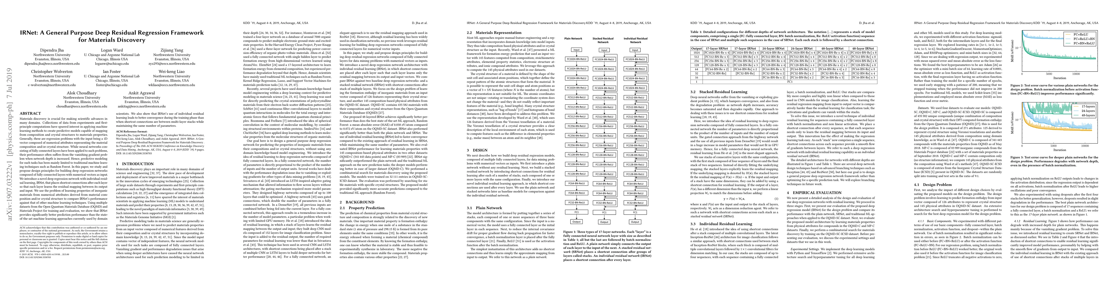 IRNet is a novel deep residual regression framework designed to enhance materials discovery through improved predictive models for mapping material composition and crystal structures to properties. It outperforms existing methods by using individual residual learning with shortcut connections after each layer, leading to better convergence and superior prediction performance.