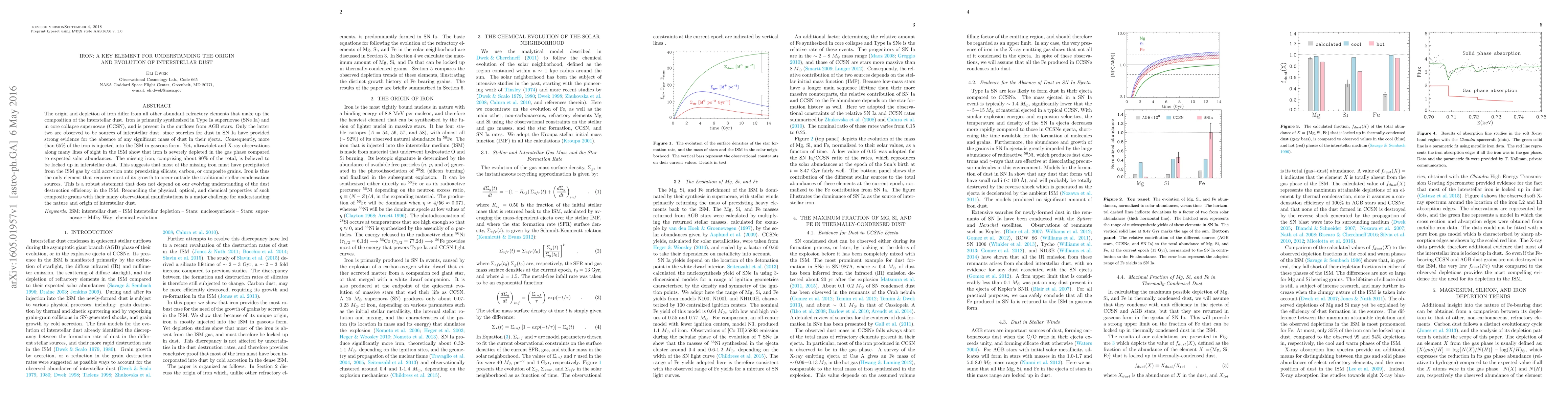This paper explores how iron, synthesized in supernovae and AGB stars, becomes depleted in the gas phase and largely trapped in interstellar dust, suggesting that most iron growth occurs outside traditional stellar condensation sources. The challenge lies in reconciling the physical and chemical properties of composite grains with observational data.