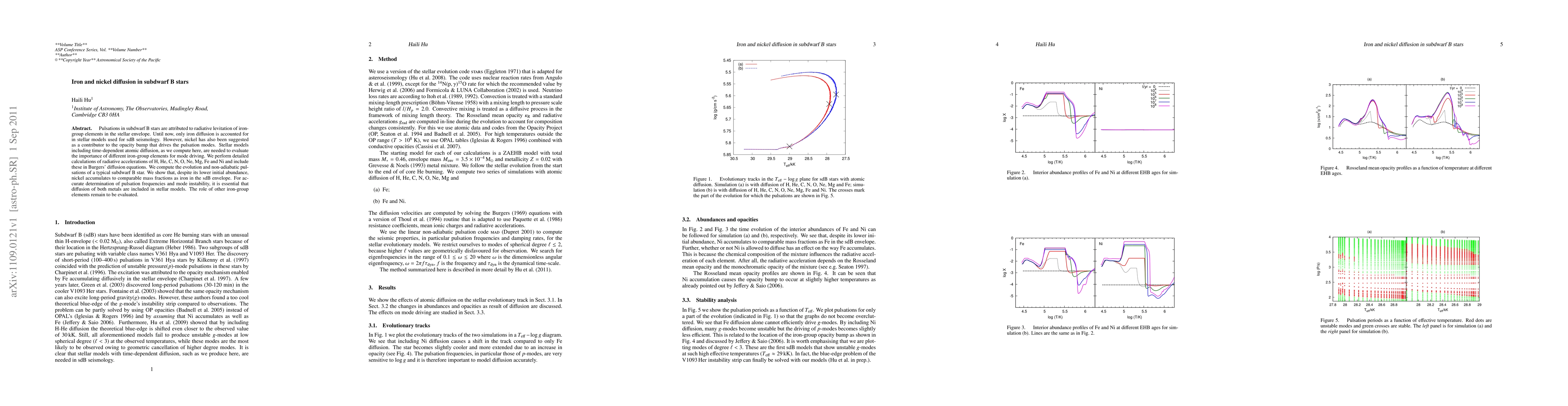 This study investigates the diffusion of iron and nickel in subdwarf B stars, showing that nickel, despite lower initial abundance, accumulates to comparable levels as iron. Accurate stellar models for sdB seismology must include diffusion of both metals to determine pulsation frequencies and mode instability.