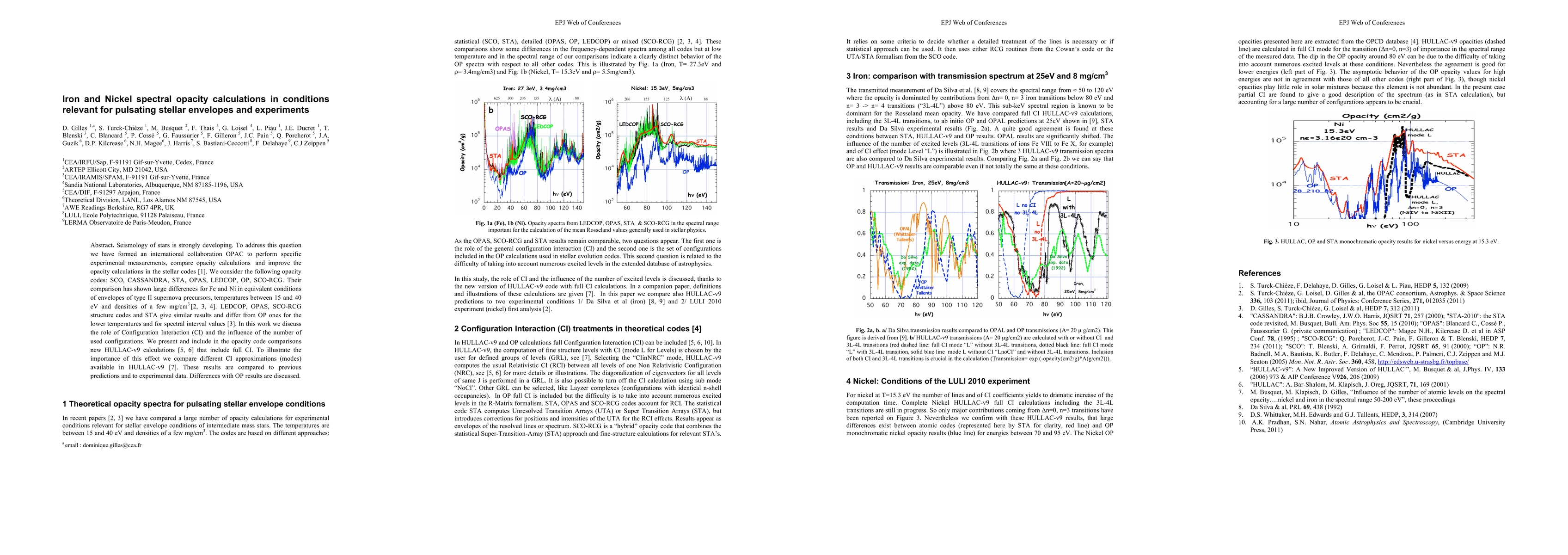 Researchers compared iron and nickel spectral opacity calculations in various codes to improve accuracy for pulsating stellar envelopes and experiments. New HULLAC-v9 calculations with full Configuration Interaction were included to better match experimental data.