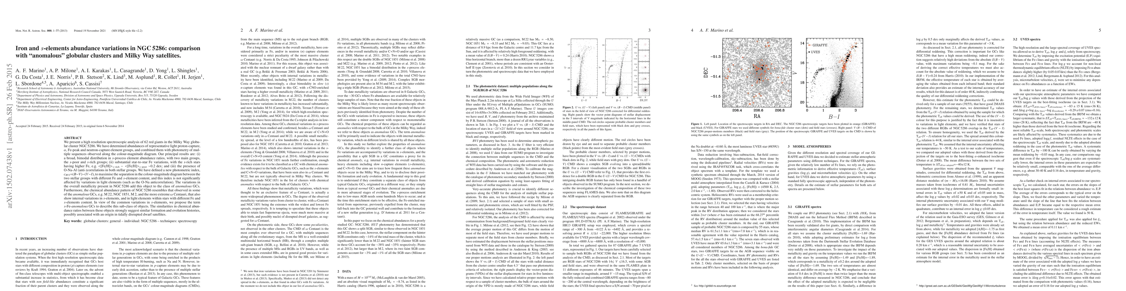 We present a high resolution spectroscopic analysis of 62 red giants in the Milky Way globular cluster NGC5286. We have determined abundances of representative light proton-capture, alpha, Fe-peak and neutron-capture element groups, and combined them with photometry of multiple sequences observed along the colour-magnitude diagram. Our principal results are: (i) a broad, bimodal distribution in s-process element abundance ratios, with two main groups, the s-poor and s-rich groups; (ii) substantial star-to-star Fe variations, with the s-rich stars having higher Fe, e.g. <[Fe/H]>_s-rich - <[Fe/H]>_s-poor ~ 0.2~dex; and (iii) the presence of O-Na-Al (anti-)correlations in both stellar groups. We have defined a new photometric index, c_{BVI}=(B-V)-(V-I), to maximise the separation in the colour-magnitude diagram between the two stellar groups with different Fe and s-element content, and this index is not significantly affected by variations in light elements (such as the O-Na anticorrelation). The variations in the overall metallicity present in NGC5286 add this object to the class of "anomalous" GCs. Furthermore, the chemical abundance pattern of NGC5286 resembles that observed in some of the anomalous GCs, e.g. M22, NGC1851, M2, and the more extreme Omega Centauri, that also show internal variations in s-elements, and in light elements within stars with different Fe and s-elements content. In view of the common variations in s-elements, we propose the term s-Fe-anomalous GCs to describe this sub-class of objects. The similarities in chemical abundance ratios between these objects strongly suggest similar formation and evolution histories, possibly associated with an origin in tidally disrupted dwarf satellites.
