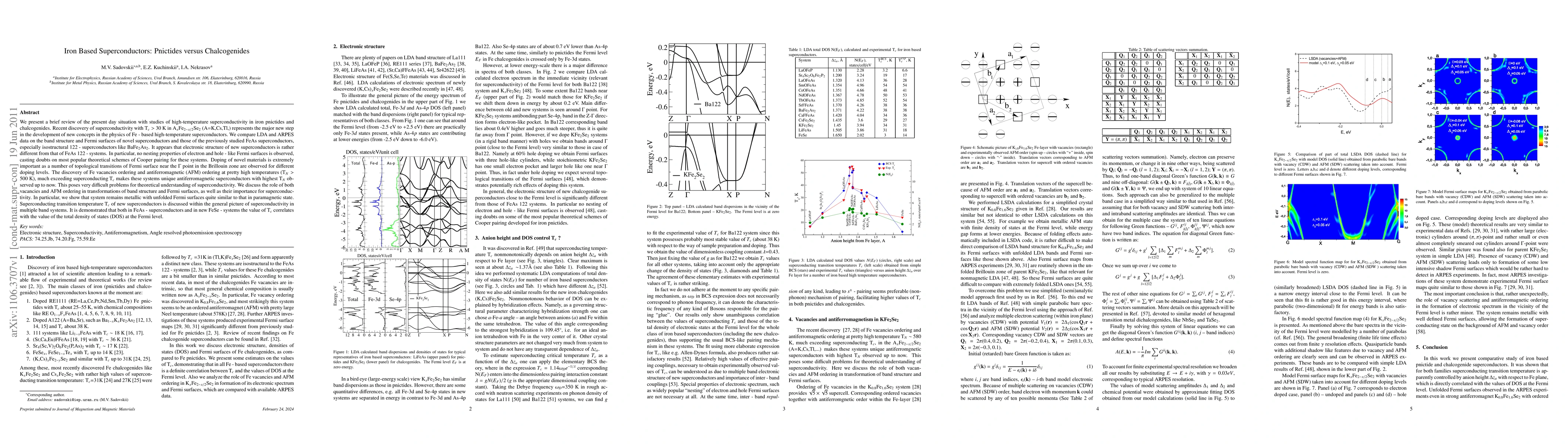 This paper reviews high-temperature superconductivity in iron pnictides and chalcogenides, highlighting the discovery of FeSe-based superconductors with T_c > 30 K. It contrasts the electronic structure of FeSe systems with FeAs-based superconductors, noting the absence of nesting in FeSe, which challenges conventional pairing theories.