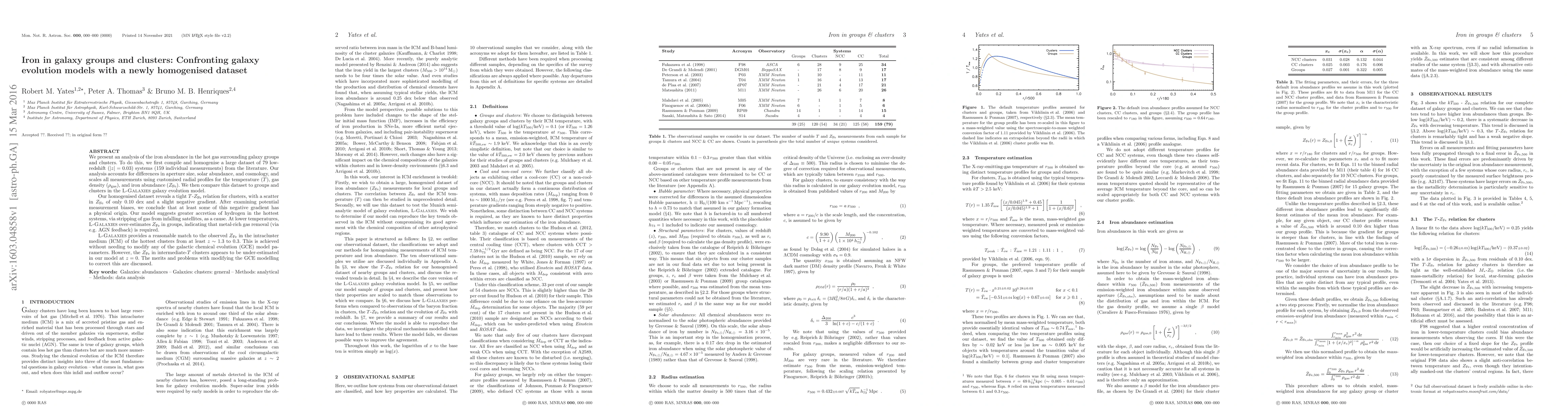 We present an analysis of the iron abundance in the hot gas surrounding galaxy groups and clusters. To do this, we first compile and homogenise a large dataset of 79 low-redshift (|z| = 0.03) systems (159 individual measurements) from the literature. Our analysis accounts for differences in aperture size, solar abundance, and cosmology, and scales all measurements using customised radial profiles for the temperature (T), gas density, and iron abundance (Z). We then compare this dataset to groups and clusters in the L-Galaxies galaxy evolution model. Our homogenised dataset reveals a tight T-Z relation for clusters, with a scatter in Z of only 0.10 dex and a slight negative gradient. After examining potential measurement biases, we conclude that at least some of this negative gradient has a physical origin. Our model suggests greater accretion of hydrogen in the hottest systems, via stripping of gas from infalling satellites, as a cause. At lower temperatures, L-Galaxies over-estimates Z in groups, indicating that metal-rich gas removal (via e.g. AGN feedback) is required. L-Galaxies provides a reasonable match to the observed Z in the intracluster medium (ICM) of the hottest clusters from at least z ~ 1.3 to 0.3. This is achieved without needing to modify any of the galactic chemical evolution (GCE) model parameters. However, the Z in intermediate-temperature clusters appears to be under-estimated in our model at z = 0. The merits and problems with modifying the GCE modelling to correct this are discussed.