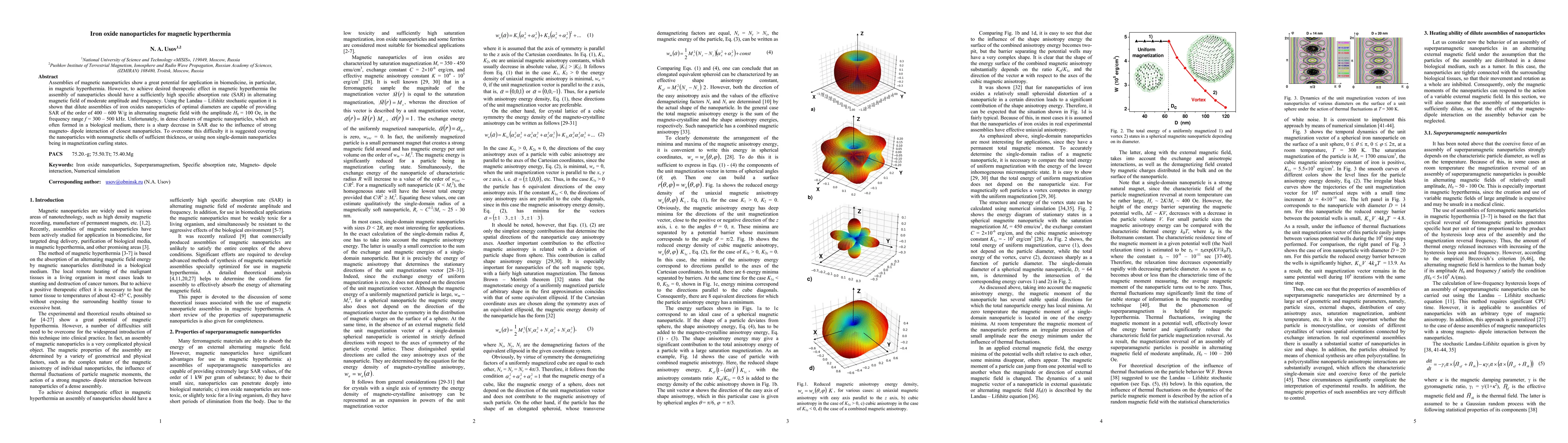 This paper explores the potential of iron oxide nanoparticles for magnetic hyperthermia, emphasizing the need for assemblies with high specific absorption rates in moderate alternating magnetic fields to achieve effective therapeutic outcomes.
