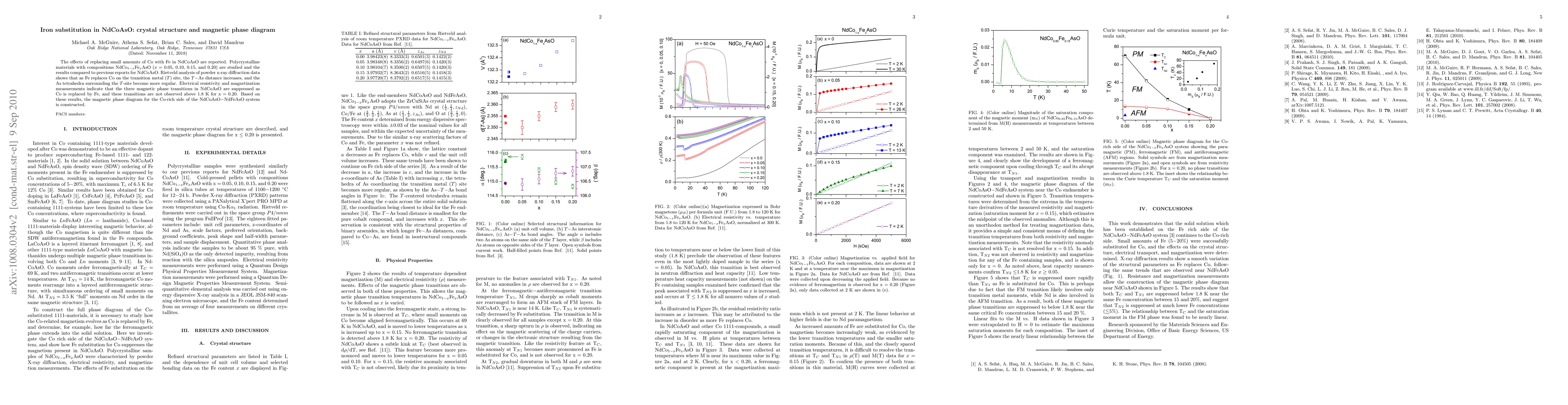 This study investigates the impact of Fe substitution for Co in NdCoAsO, revealing increased T-As distances and more regular As tetrahedra with Fe doping. Magnetic phase transitions in NdCoAsO are suppressed as Fe replaces Co, with no observed transitions above 1.8 K for x = 0.20, leading to the construction of the magnetic phase diagram for the NdCoAsO-NdFeAsO system.