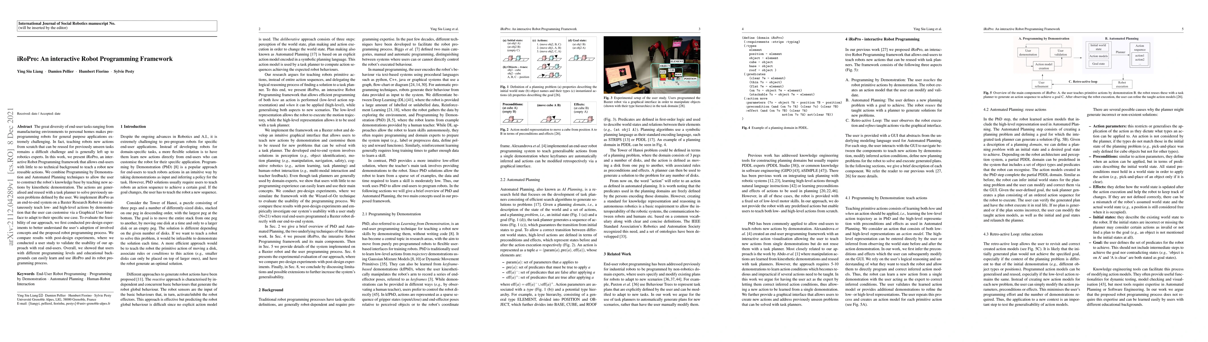 iRoPro is an interactive robot programming framework enabling non-experts to teach robots new actions through kinesthetic demonstration, combining Programming by Demonstration and Automated Planning. User studies demonstrated its usability across diverse programming levels and educational backgrounds.