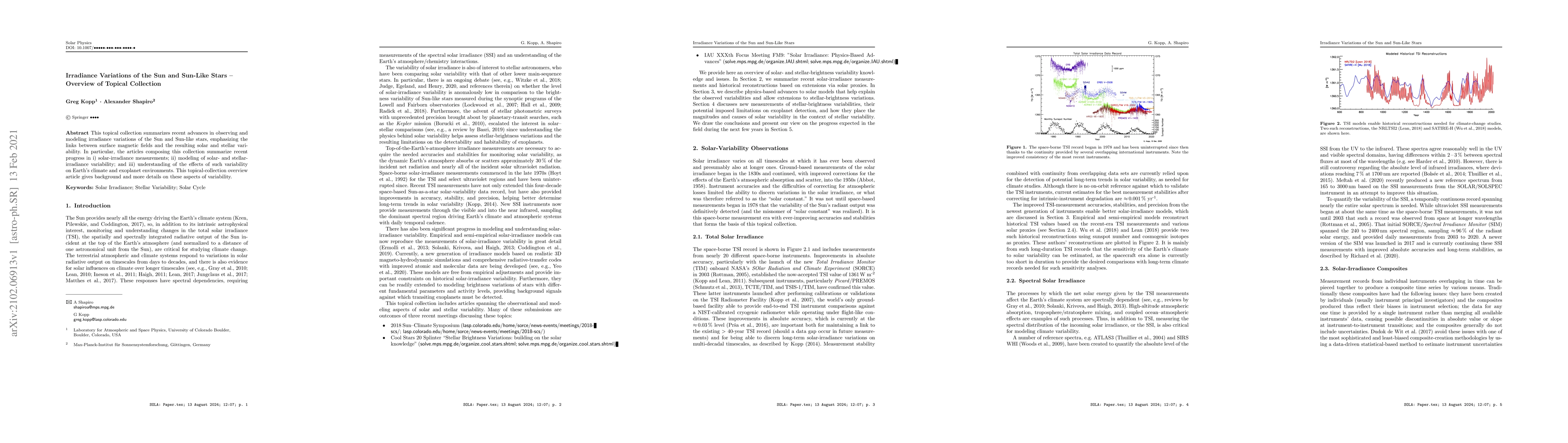 This topical collection summarizes recent advances in observing and modeling irradiance variations of the Sun and Sun-like stars, emphasizing the links between surface magnetic fields and the resulting solar and stellar variability. In particular, the articles composing this collection summarize recent progress in i) solar-irradiance measurements; ii) modeling of solar- and stellar-irradiance variability; and iii) understanding of the effects of such variability on Earth's climate and exoplanet environments. This topical-collection overview article gives background and more details on these aspects of variability.