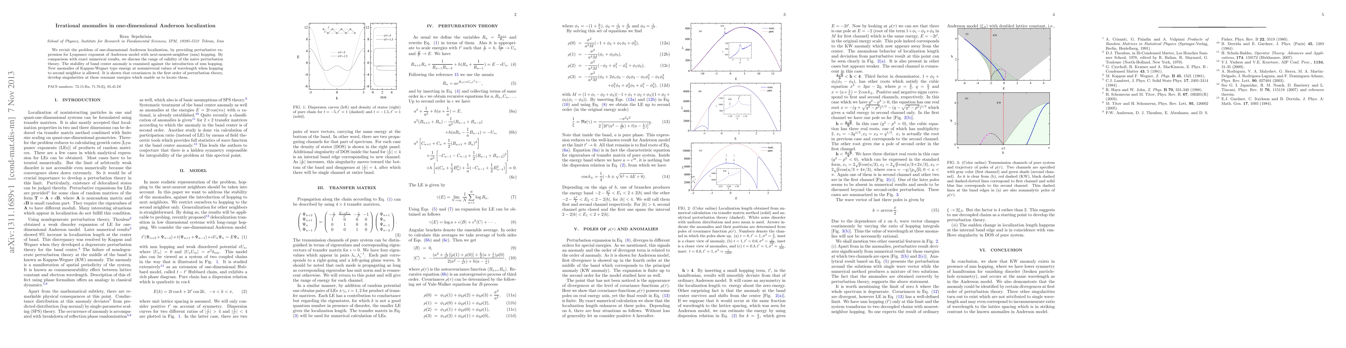 We revisit the problem of one-dimensional Anderson localization, by providing perturbative expression for Lyapunov exponent of Anderson model with next-nearest-neighbor (nnn) hopping. By comparison with exact numerical results, we discuss the range of validity of the naive perturbation theory. The stability of band center anomaly is examined against the introduction of nnn hopping. New anomalies of Kappus-Wegner type emerge at nonuniversal values of wavelength when hopping to second neighbor is allowed. It is shown that covariances in the first order of perturbation theory, develop singularities at these resonant energies which enable us to locate them.