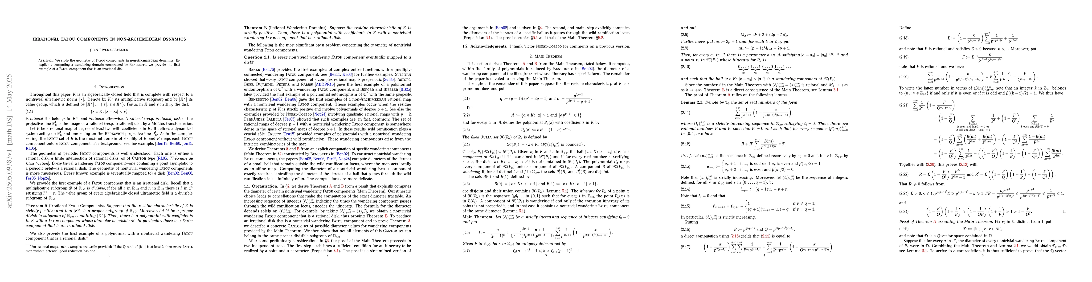 Researchers study the geometry of Fatou components in non-Archimedean dynamics, providing the first example of an irrational disk that is a wandering domain component.