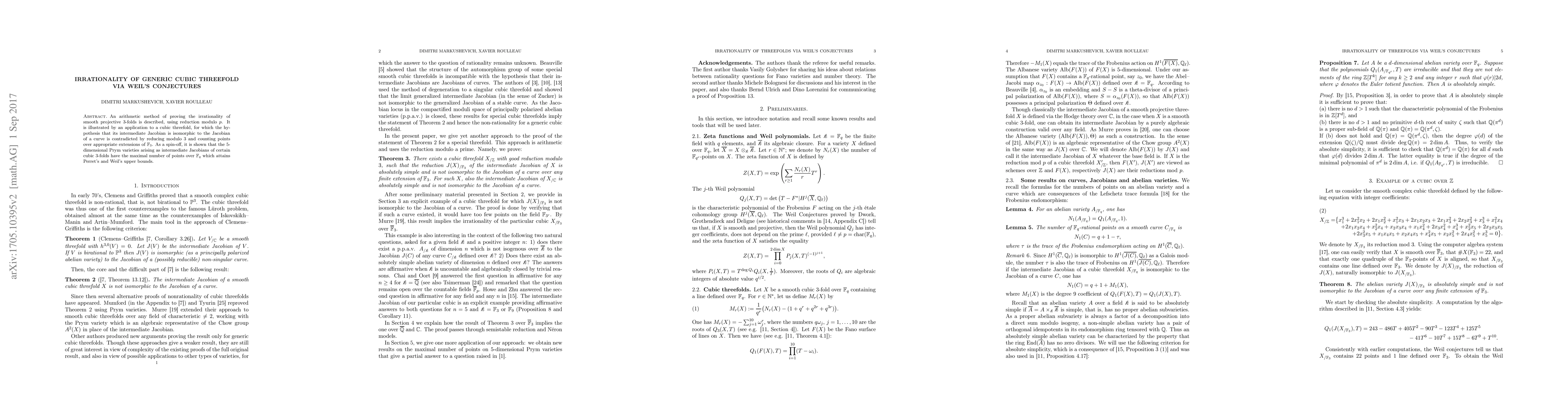 The paper describes an arithmetic method to prove the irrationality of smooth projective 3-folds using reduction modulo p, illustrated by an application to a cubic threefold.