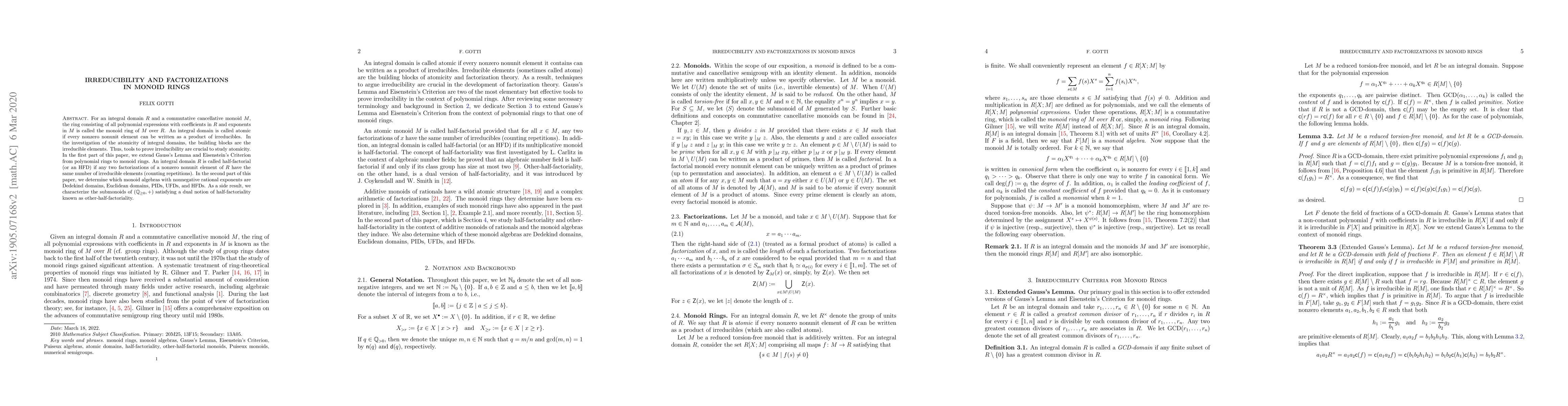 For an integral domain $R$ and a commutative cancellative monoid $M$, the ring consisting of all polynomial expressions with coefficients in $R$ and exponents in $M$ is called the monoid ring of $M$ over $R$. An integral domain is called atomic if every nonzero nonunit element can be written as a product of irreducibles. In the investigation of the atomicity of integral domains, the building blocks are the irreducible elements. Thus, tools to prove irreducibility are crucial to study atomicity. In the first part of this paper, we extend Gauss's Lemma and Eisenstein's Criterion from polynomial rings to monoid rings. An integral domain $R$ is called half-factorial (or an HFD) if any two factorizations of a nonzero nonunit element of $R$ have the same number of irreducible elements (counting repetitions). In the second part of this paper, we determine which monoid algebras with nonnegative rational exponents are Dedekind domains, Euclidean domains, PIDs, UFDs, and HFDs. As a side result, we characterize the submonoids of $(\mathbb{Q}_{\ge 0},+)$ satisfying a dual notion of half-factoriality known as other-half-factoriality.