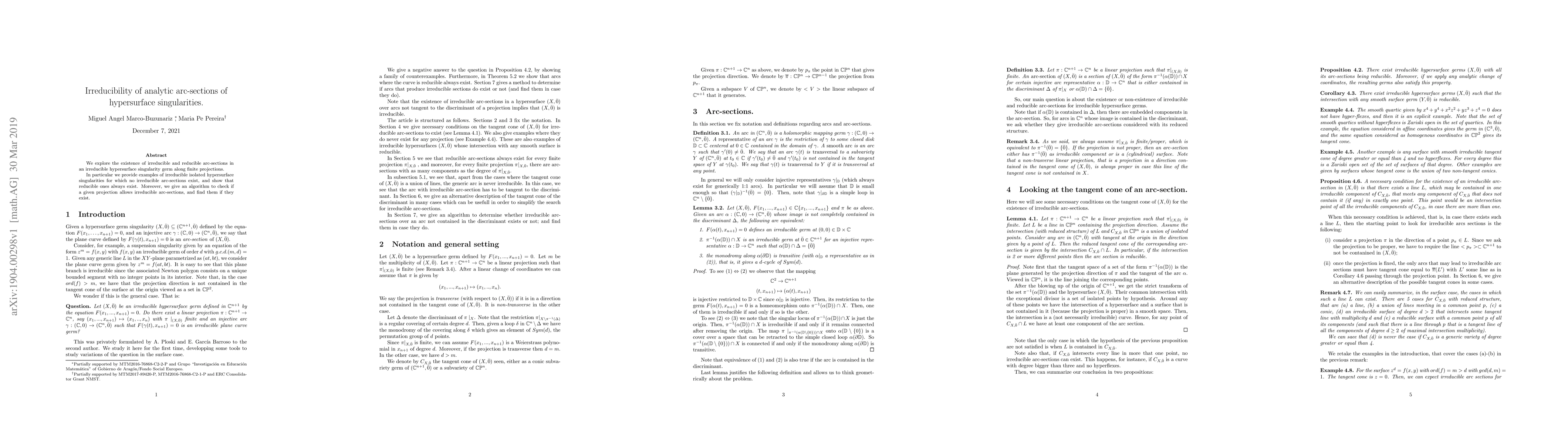 Researchers found that irreducible arc-sections of hypersurface singularities can exist or not, depending on a finite projection, providing an algorithm to check for their existence.