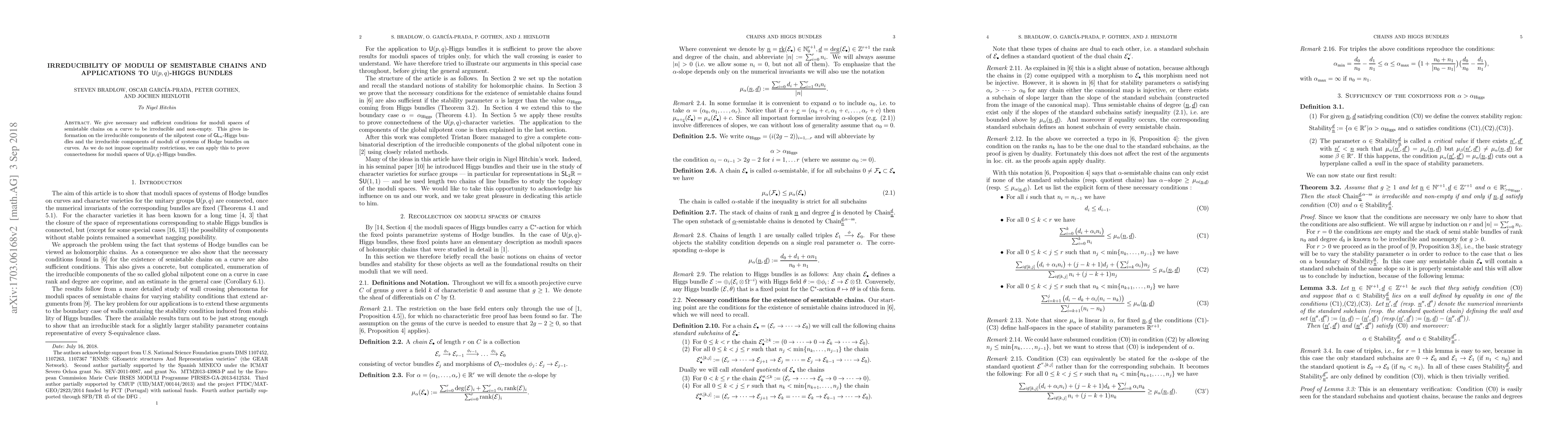 We give necessary and sufficient conditions for moduli spaces of semistable chains on a curve to be irreducible and non-empty. This gives information on the irreducible components of the nilpotent cone of GL_n-Higgs bundles and the irreducible components of moduli of systems of Hodge bundles on curves. As we do not impose coprimality restrictions, we can apply this to prove connectedness for moduli spaces of U(p,q)-Higgs bundles.