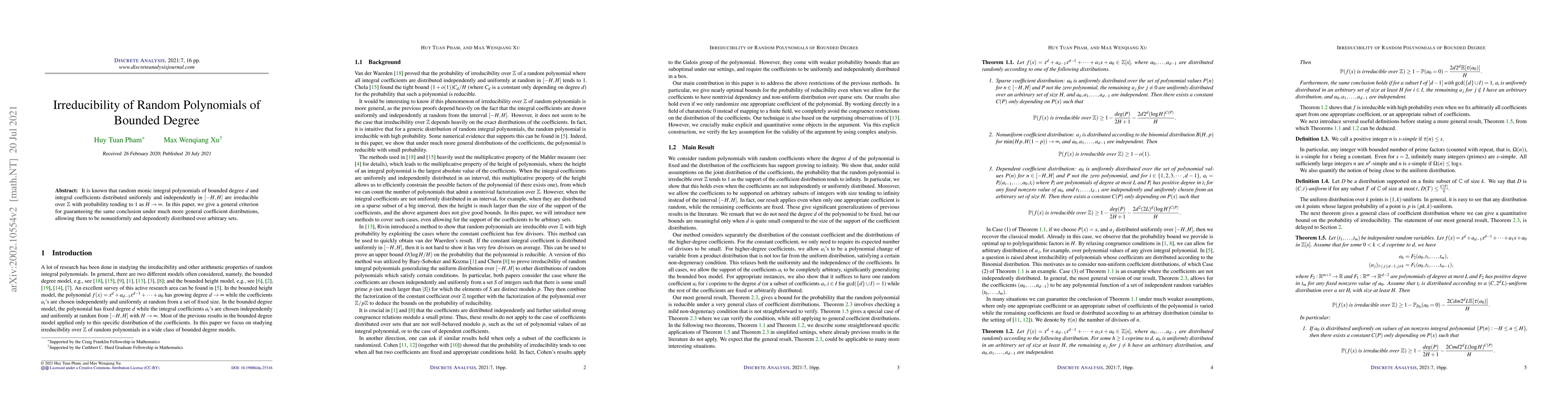It is known that random monic integral polynomials of bounded degree $d$ and integral coefficients distributed uniformly and independently in $[-H,H]$ are irreducible over $\mathbb{Z}$ with probability tending to $1$ as $H\to \infty$. In this paper, we give a general criterion for guaranteeing the same conclusion under much more general coefficient distributions, allowing them to be nonuniformly and dependently distributed over arbitrary sets.