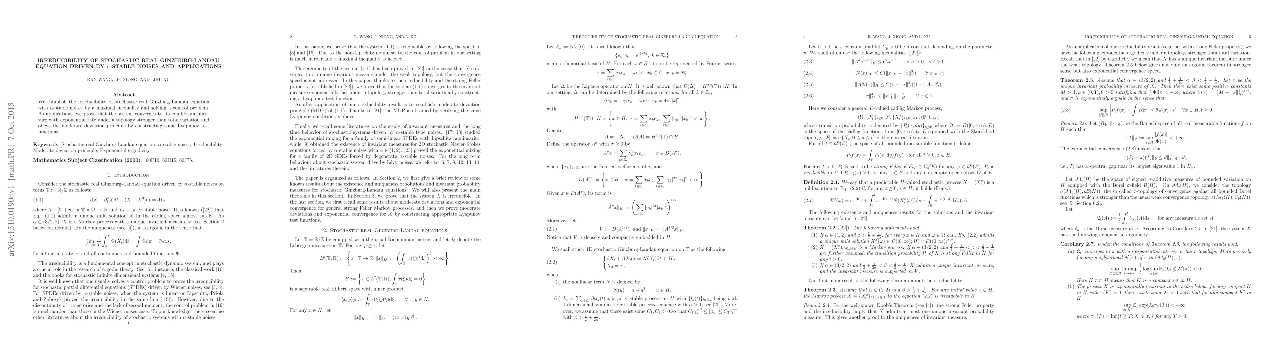 Summary: This paper proves the irreducibility of the stochastic real Ginzburg-Landau equation driven by $\alpha$-stable noise using a maximal inequality and control problem solutions. It further demonstrates the system's exponential convergence to equilibrium and adherence to the moderate deviation principle via Lyapunov functions.